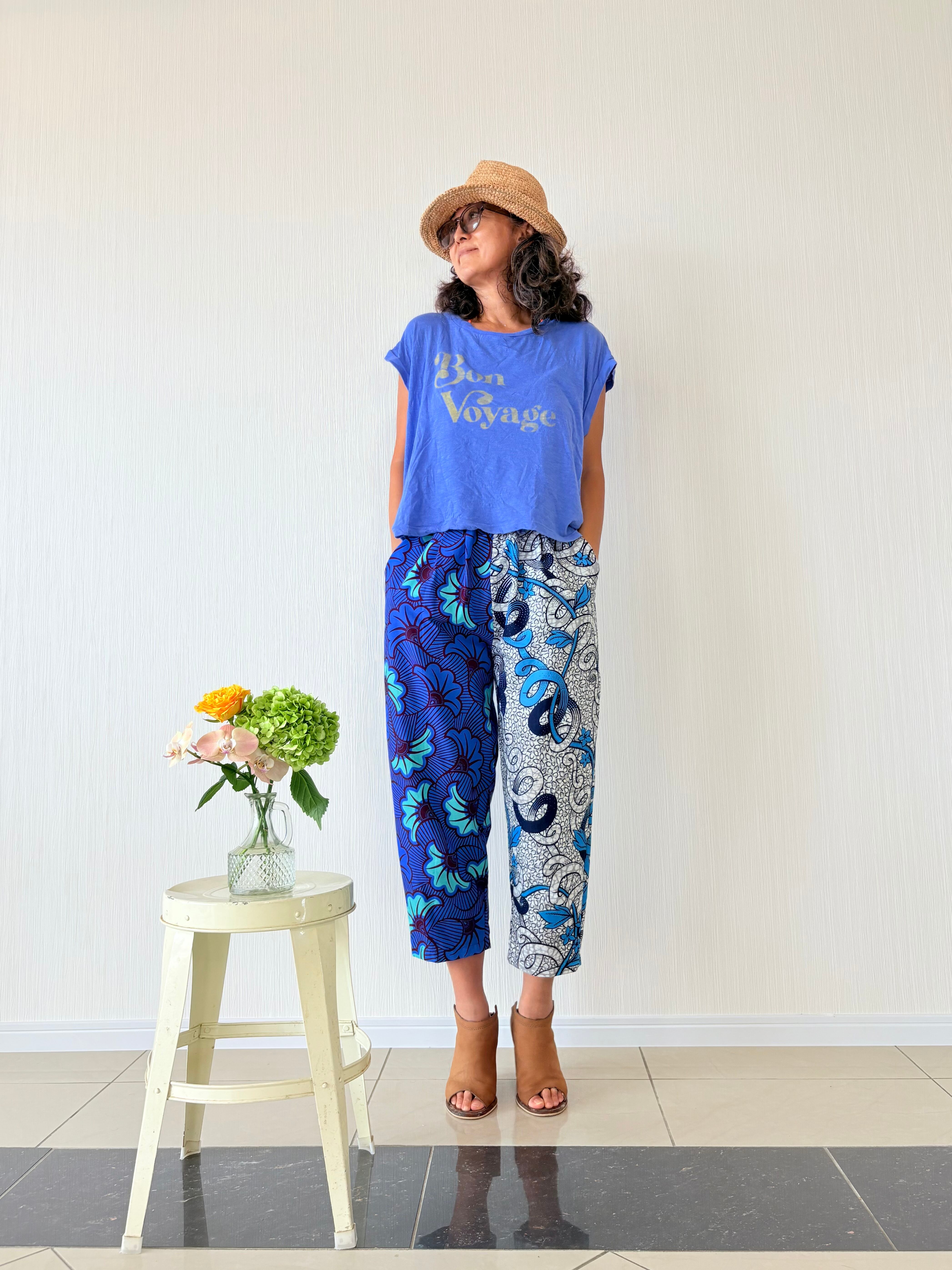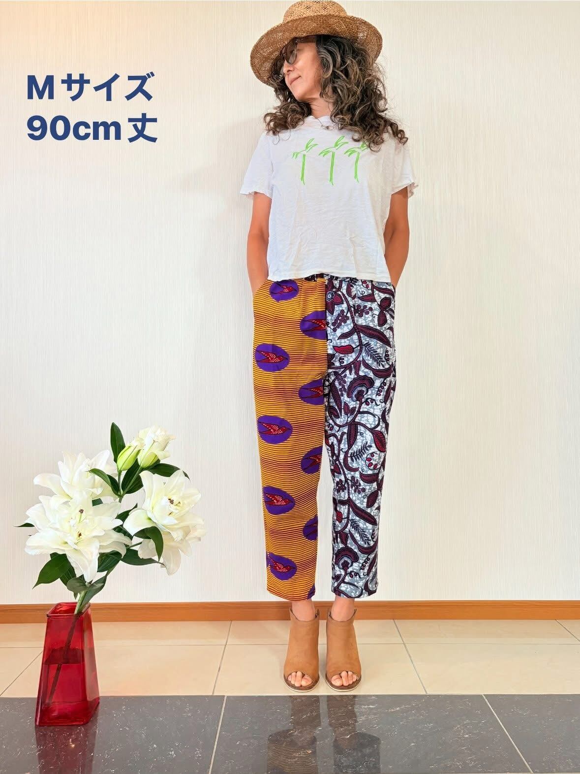 ◆アフリカ布 ゆるテーパードパンツ 85cm丈 Lサイズ
