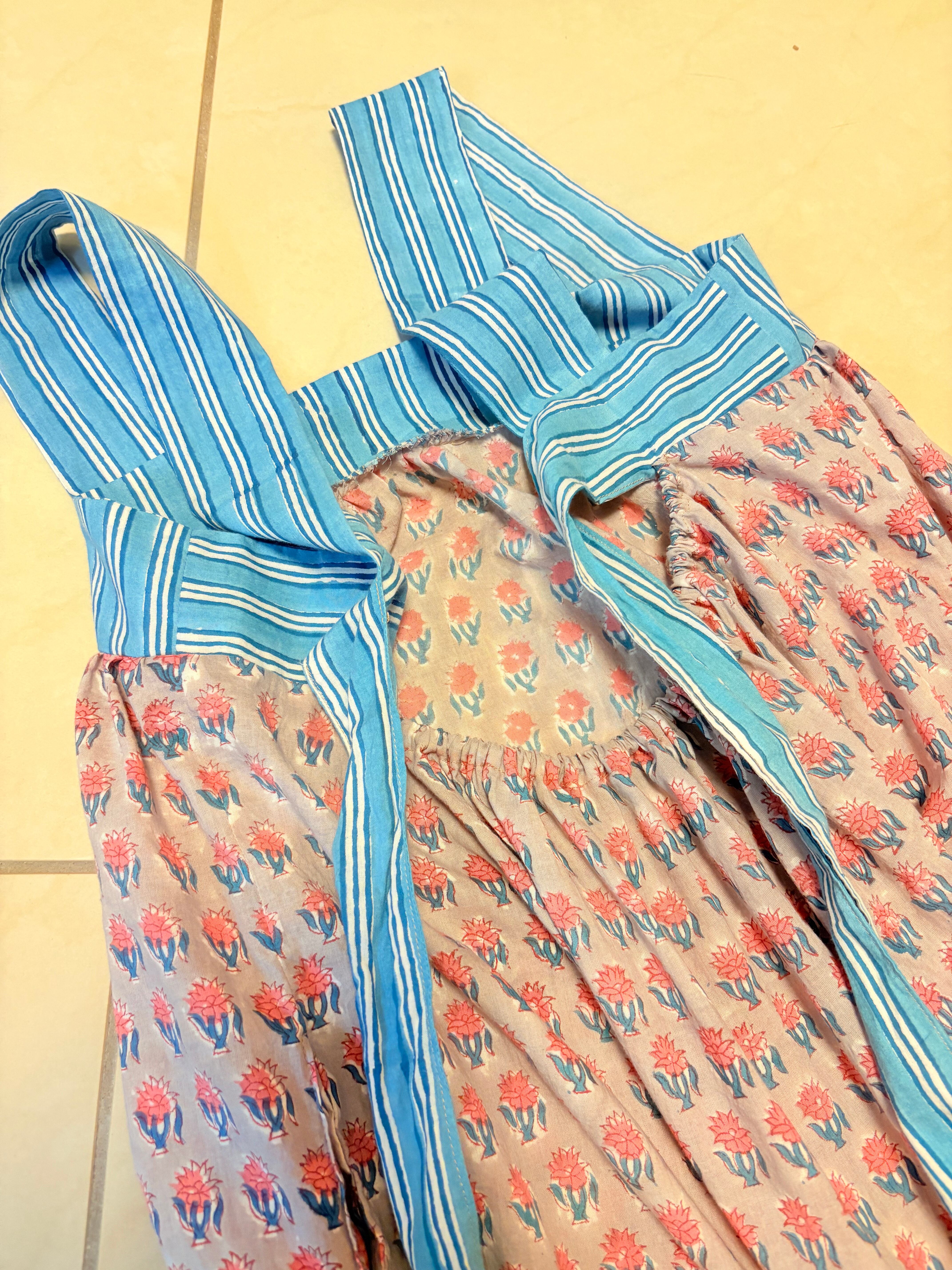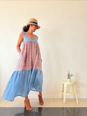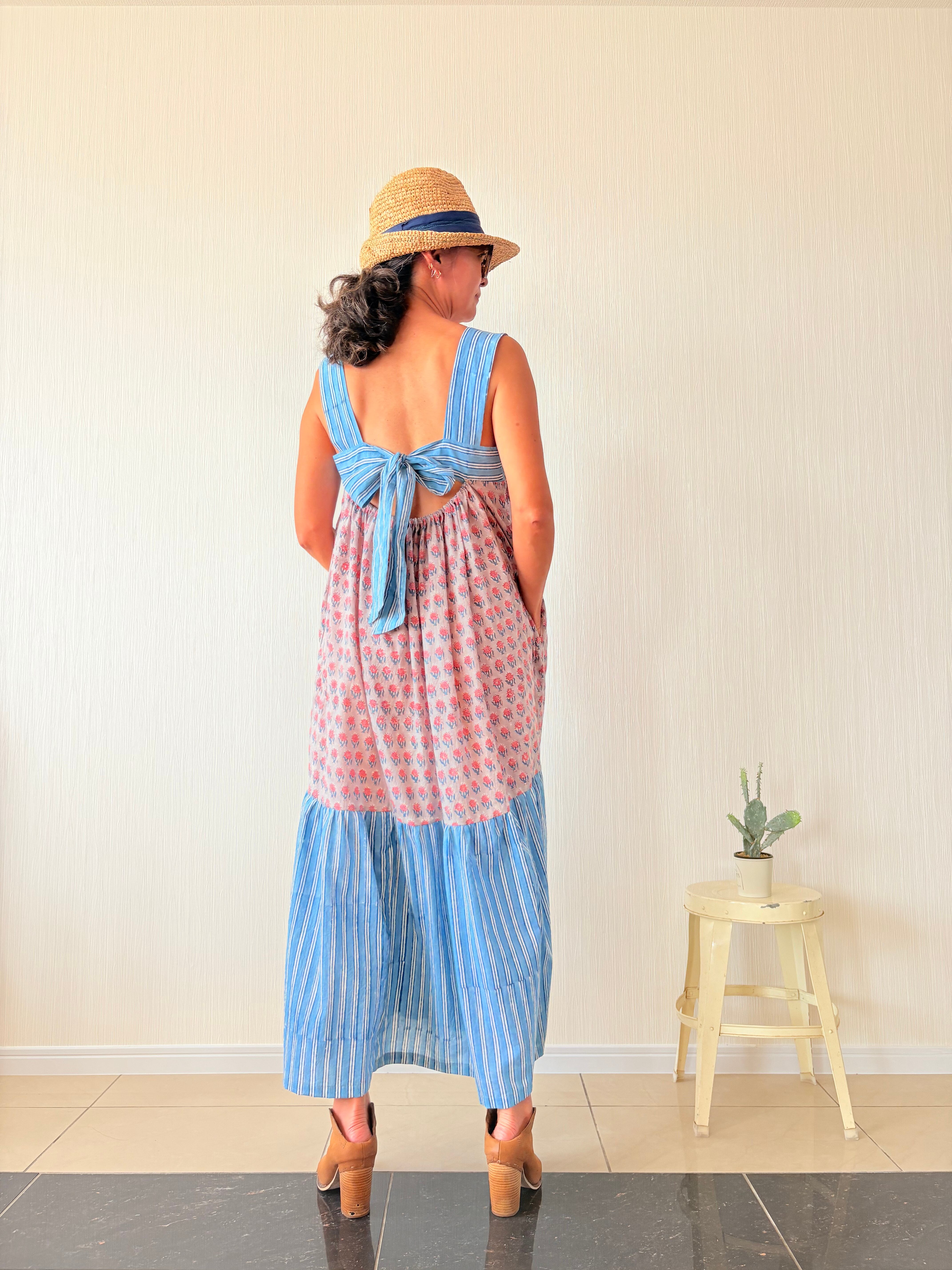 ◆インド綿 || バックリボンティアードワンピース || ブロックプリント