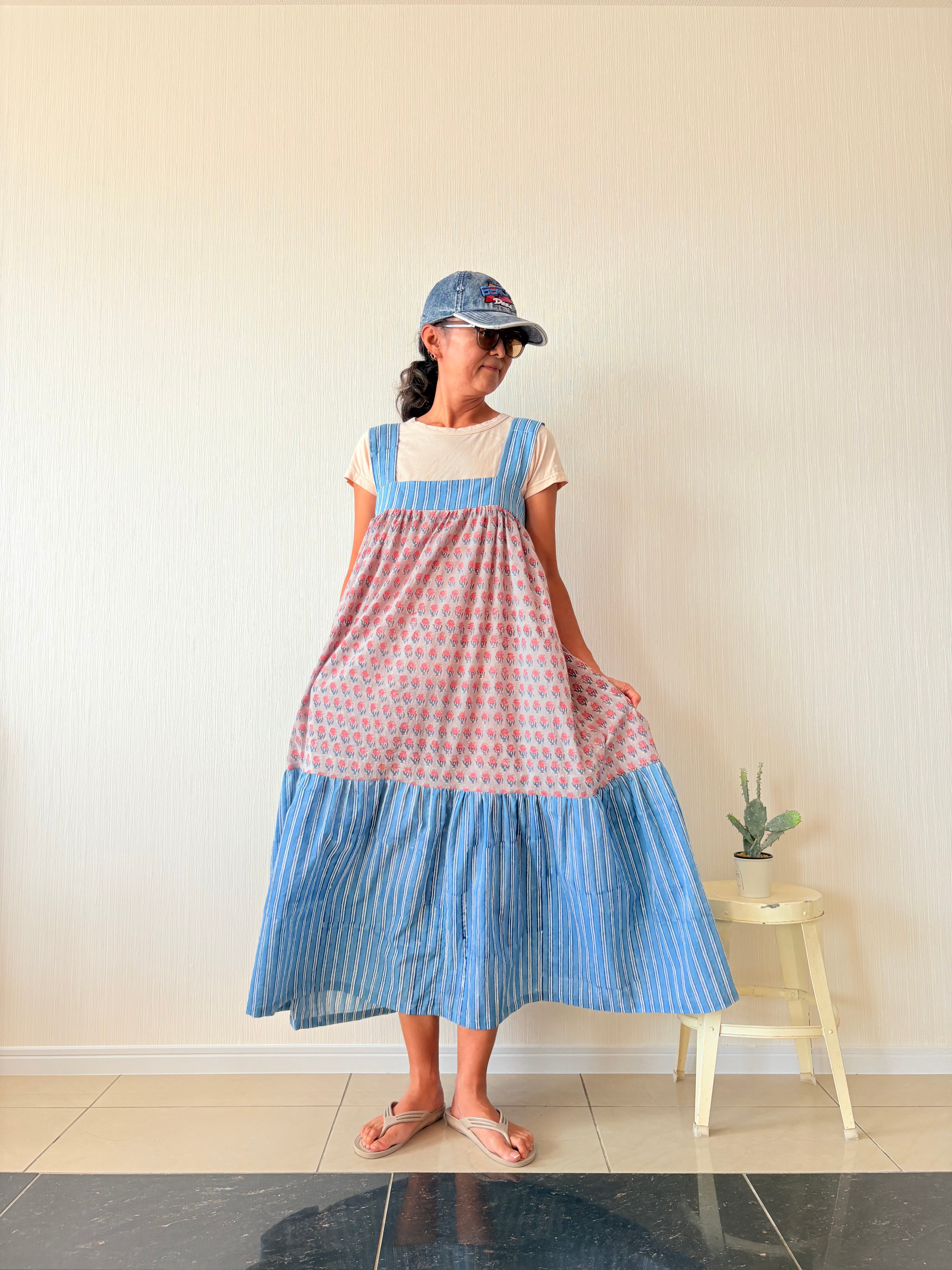 ★インド綿 || バックリボンティアードワンピース || ブロックプリント