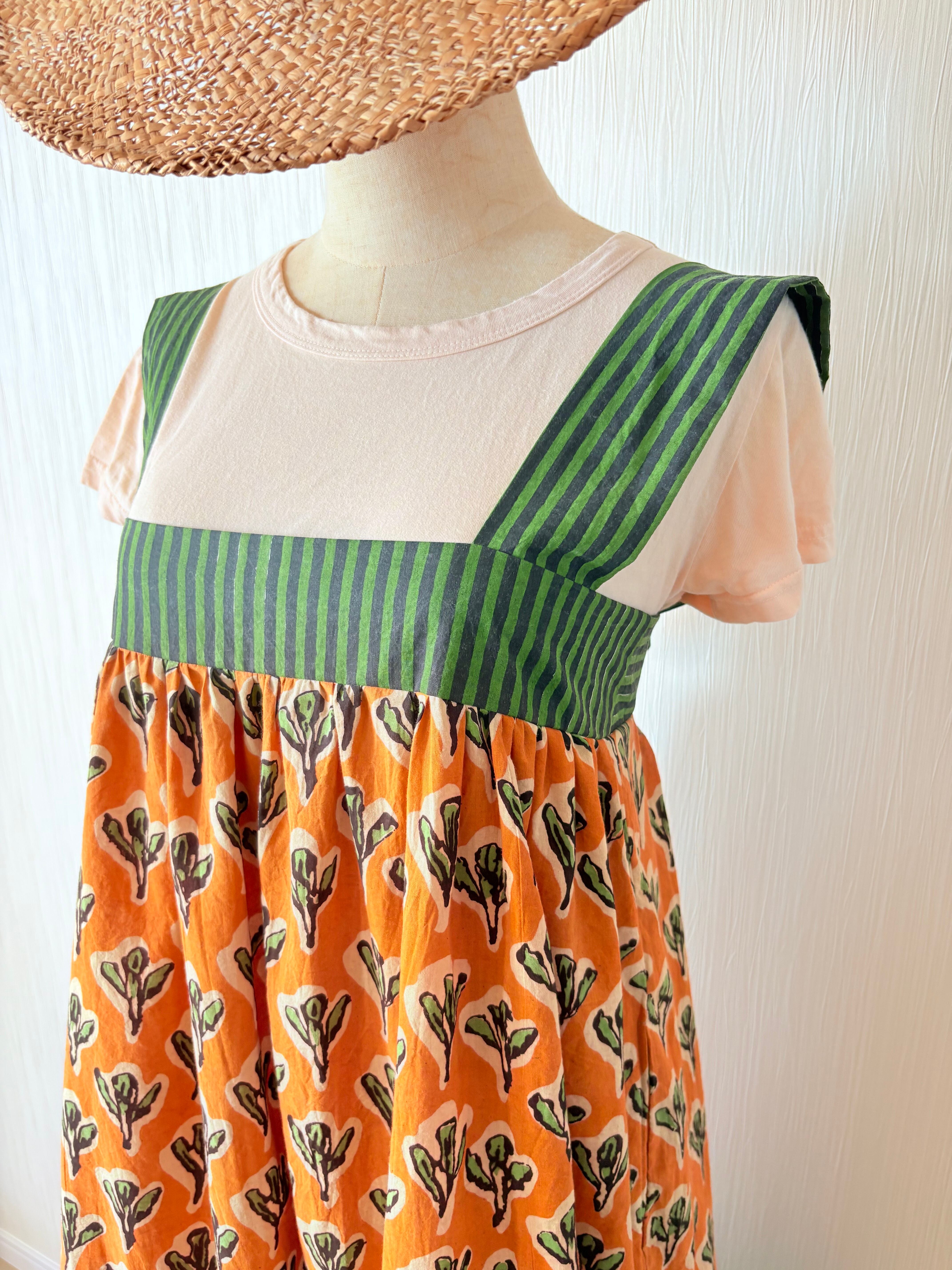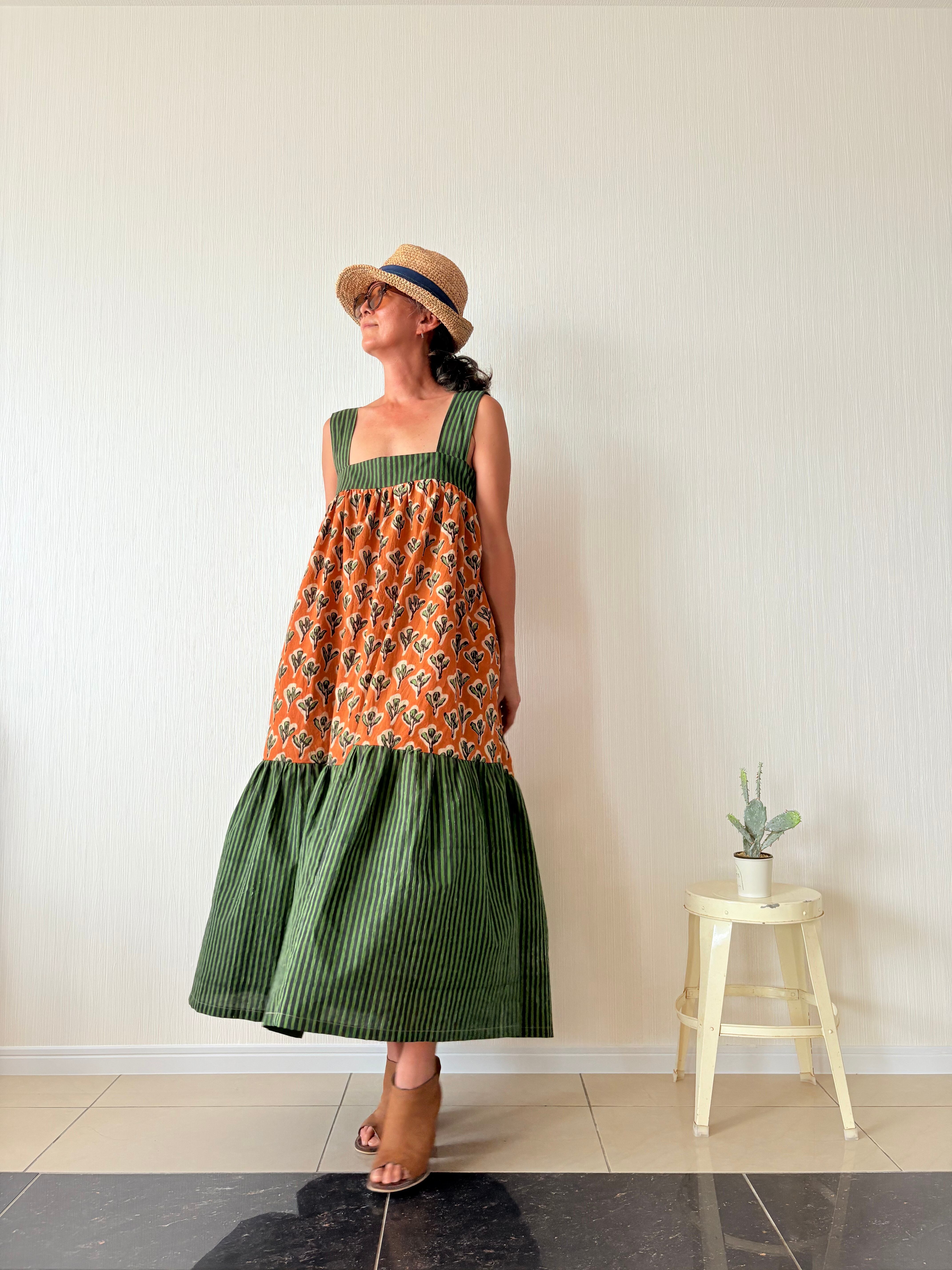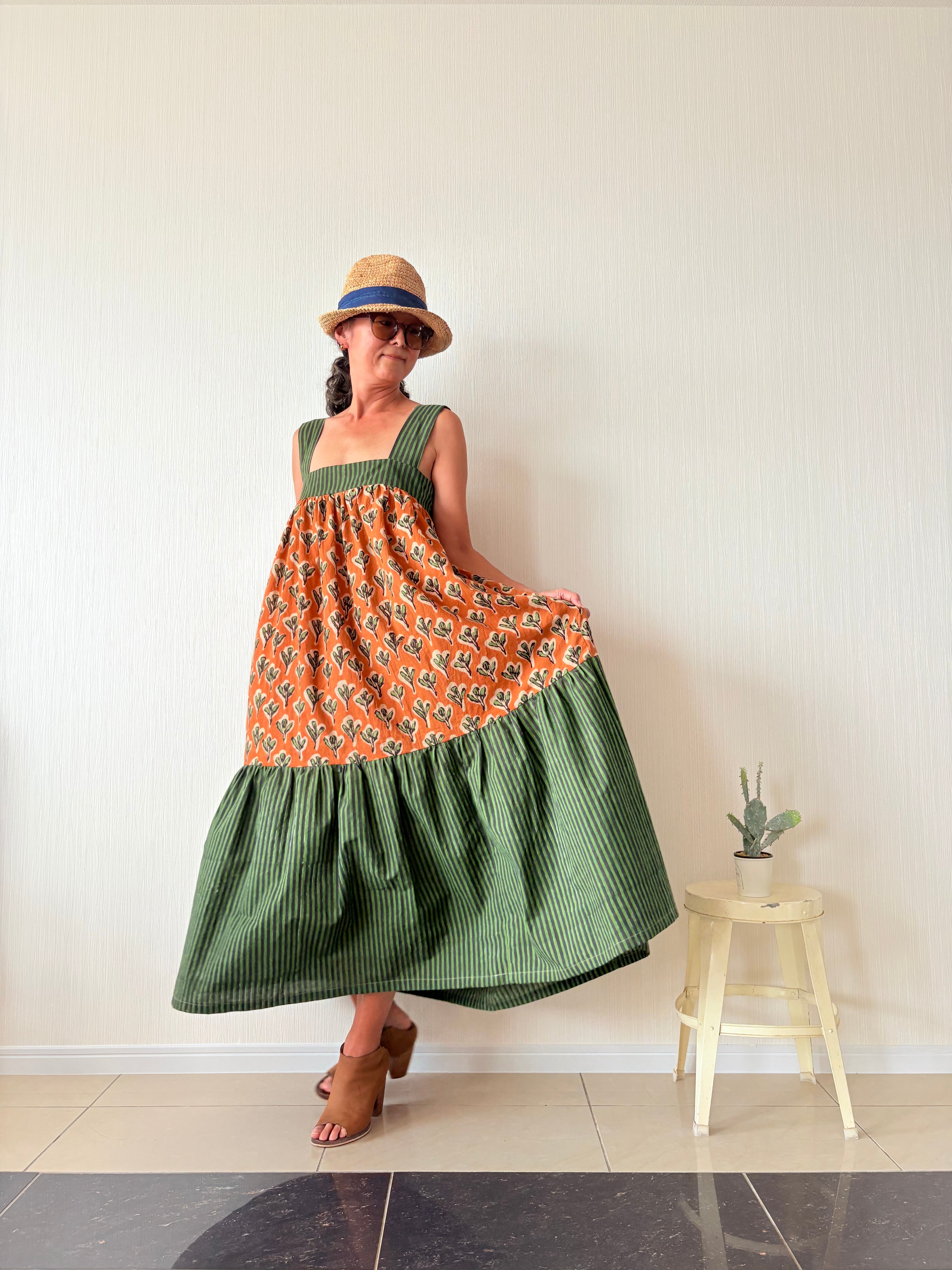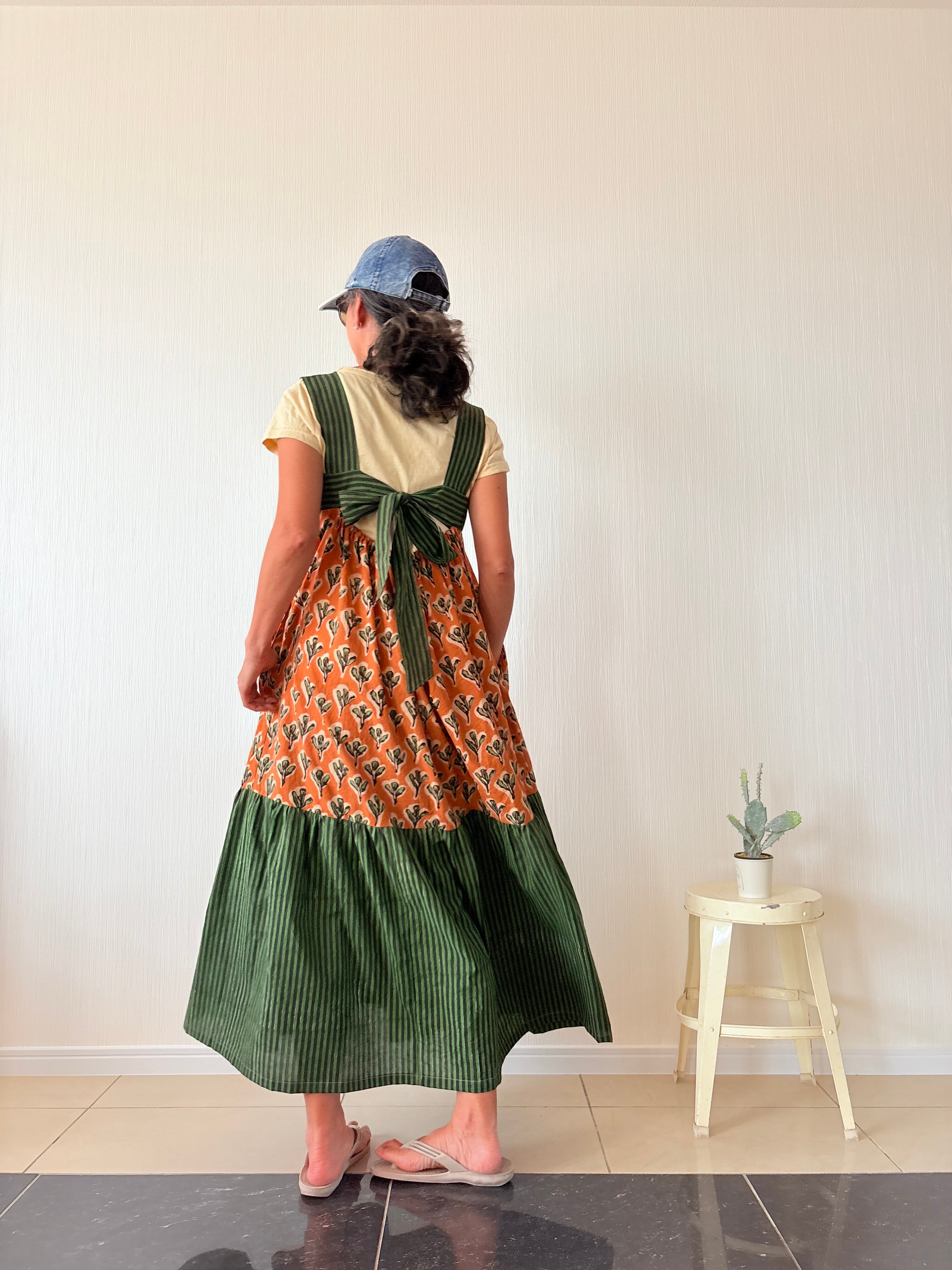 SOLD OUT / インド綿 || バックリボンティアードワンピース || ブロックプリント