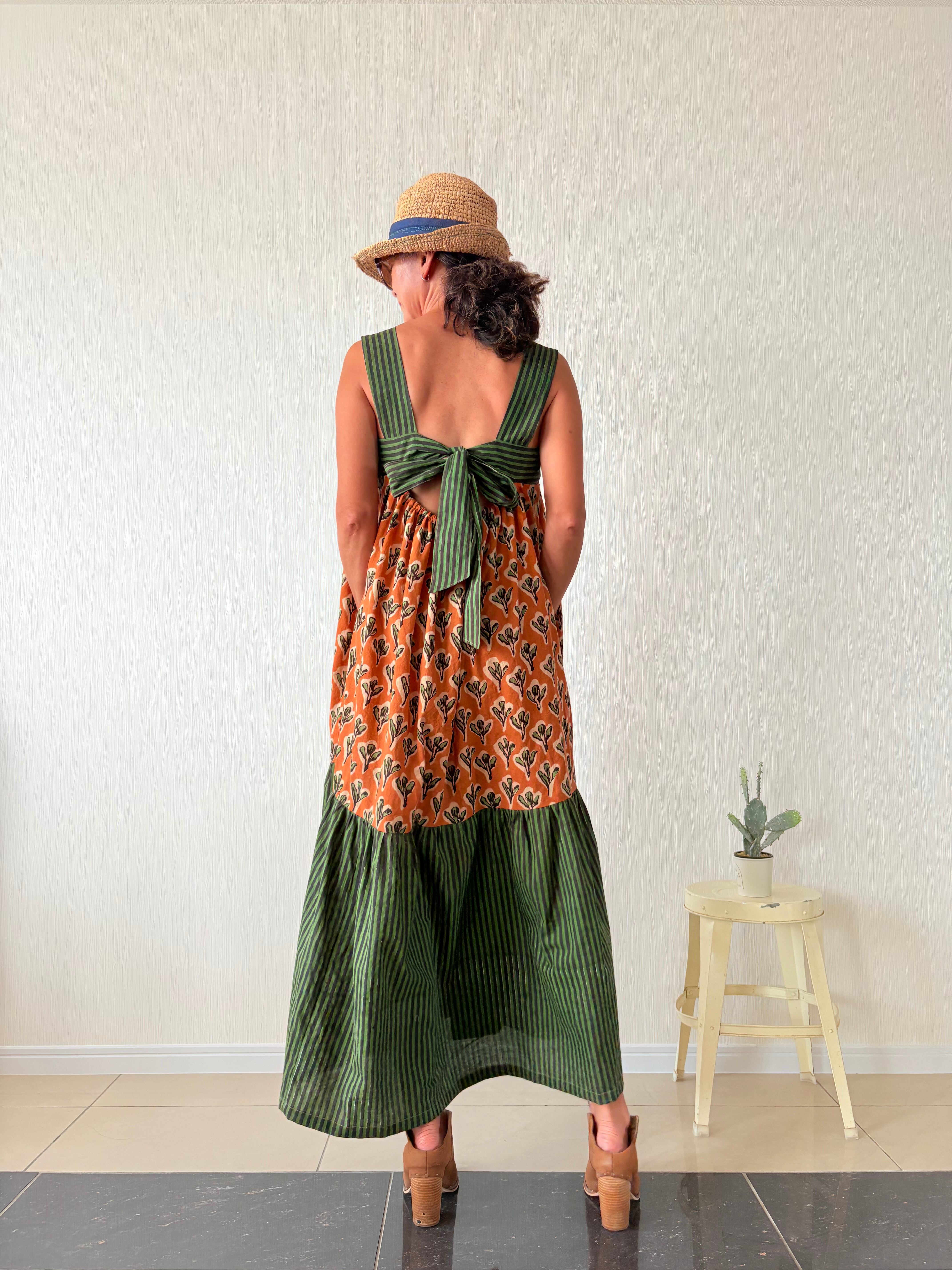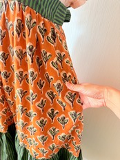 ◆インド綿 || バックリボンティアードワンピース || ブロックプリント