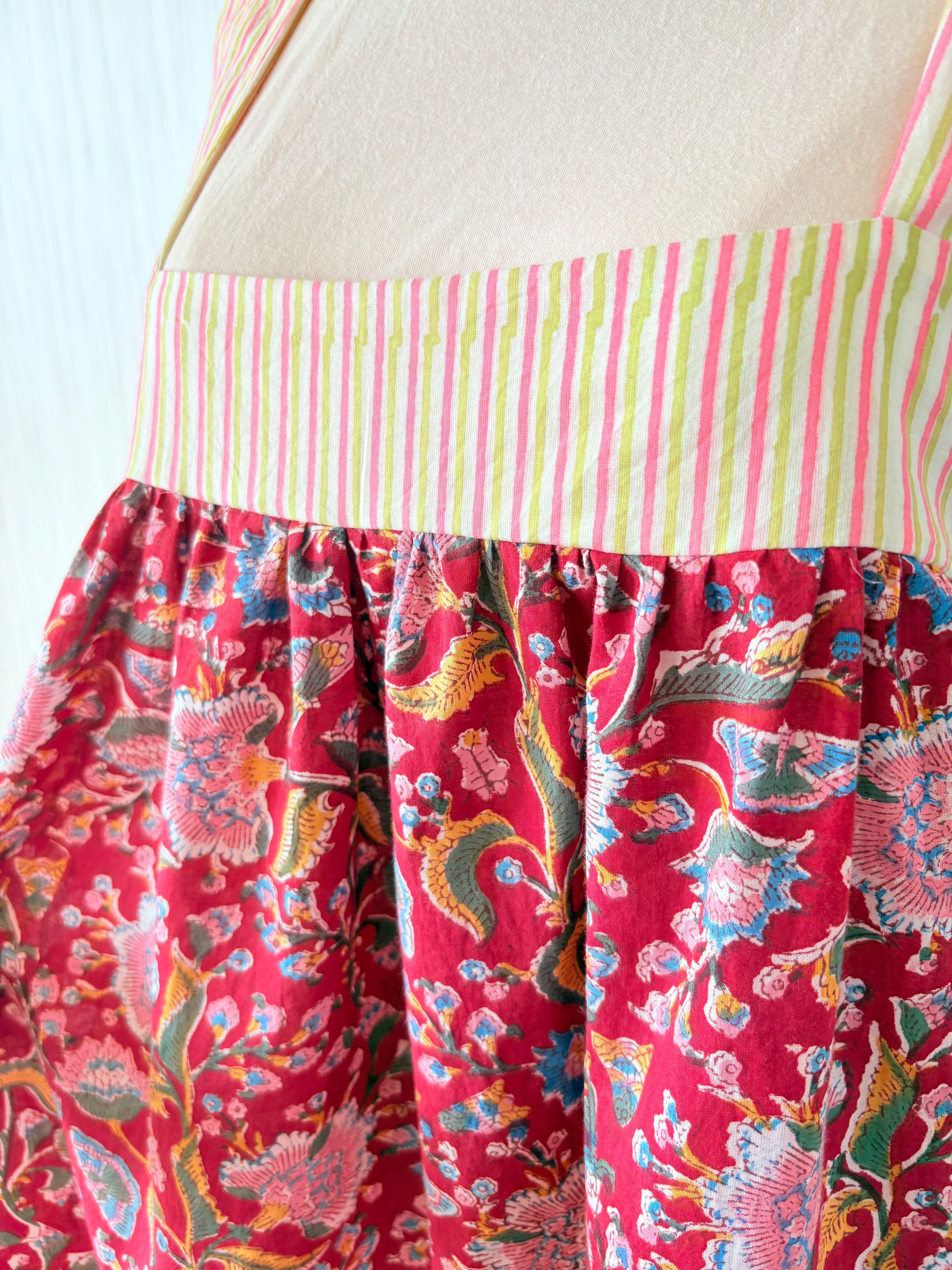 ◆インド綿 || バックリボンティアードワンピース || ブロックプリント