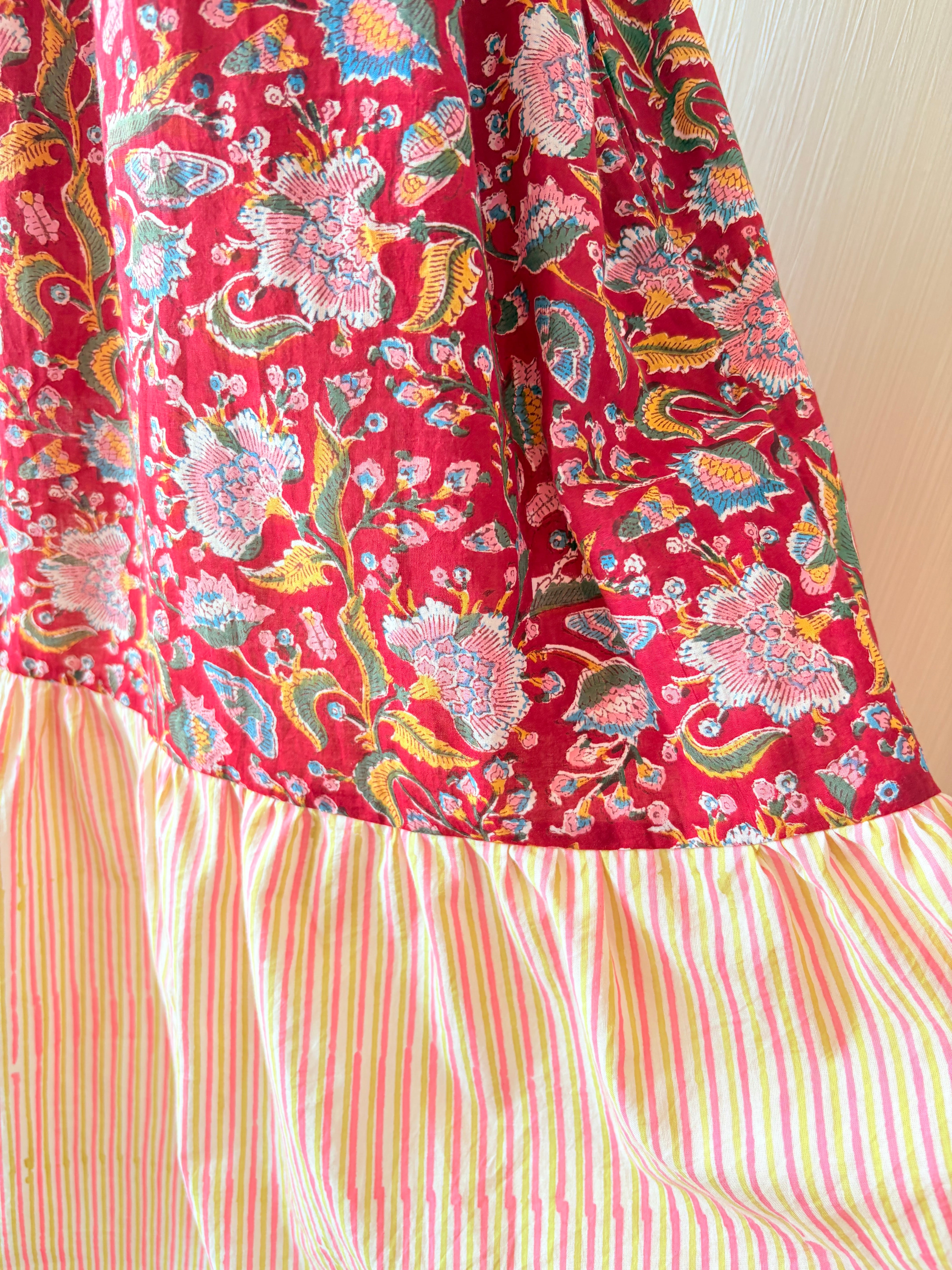 ★インド綿 || バックリボンティアードワンピース || ブロックプリント
