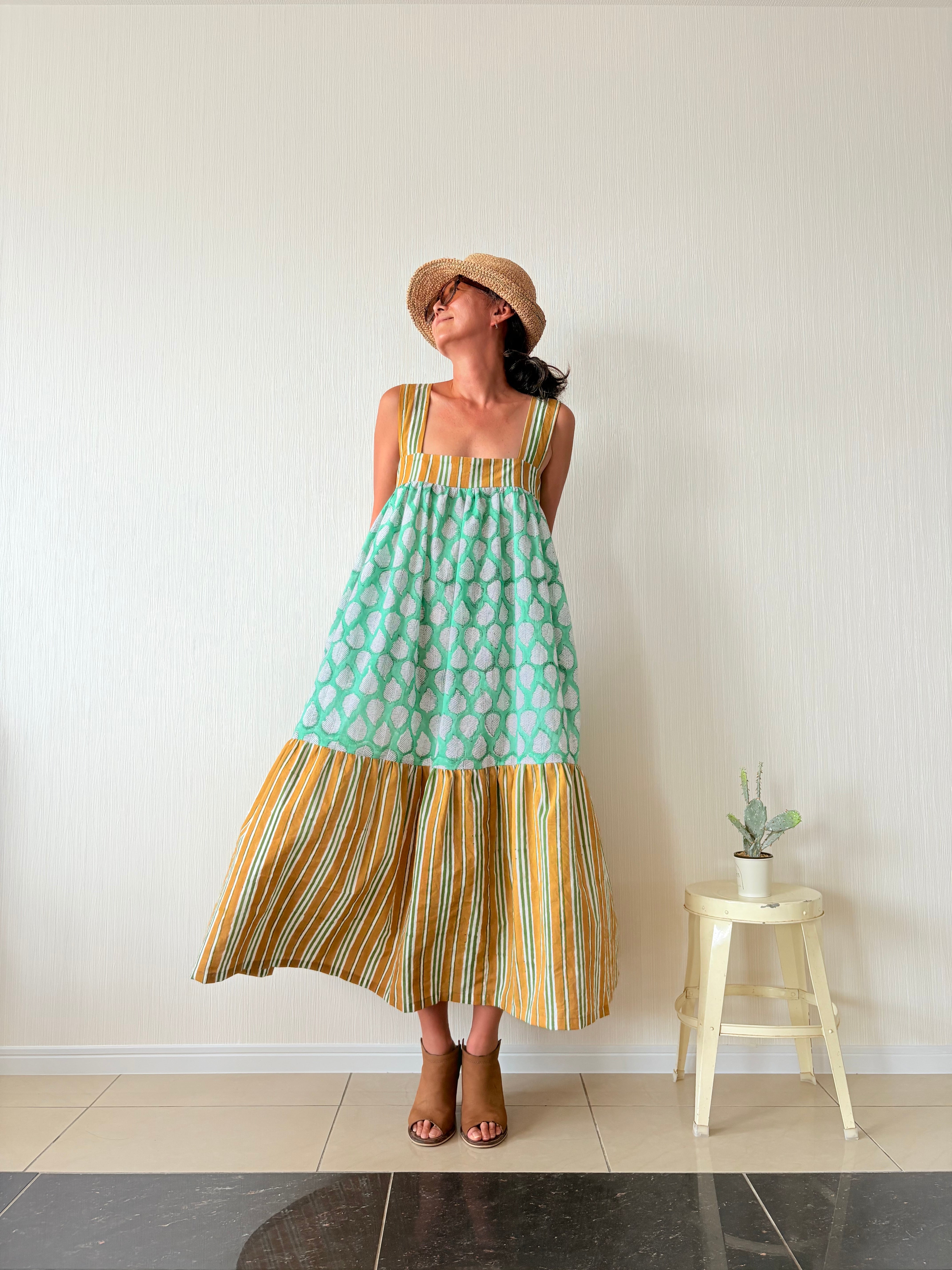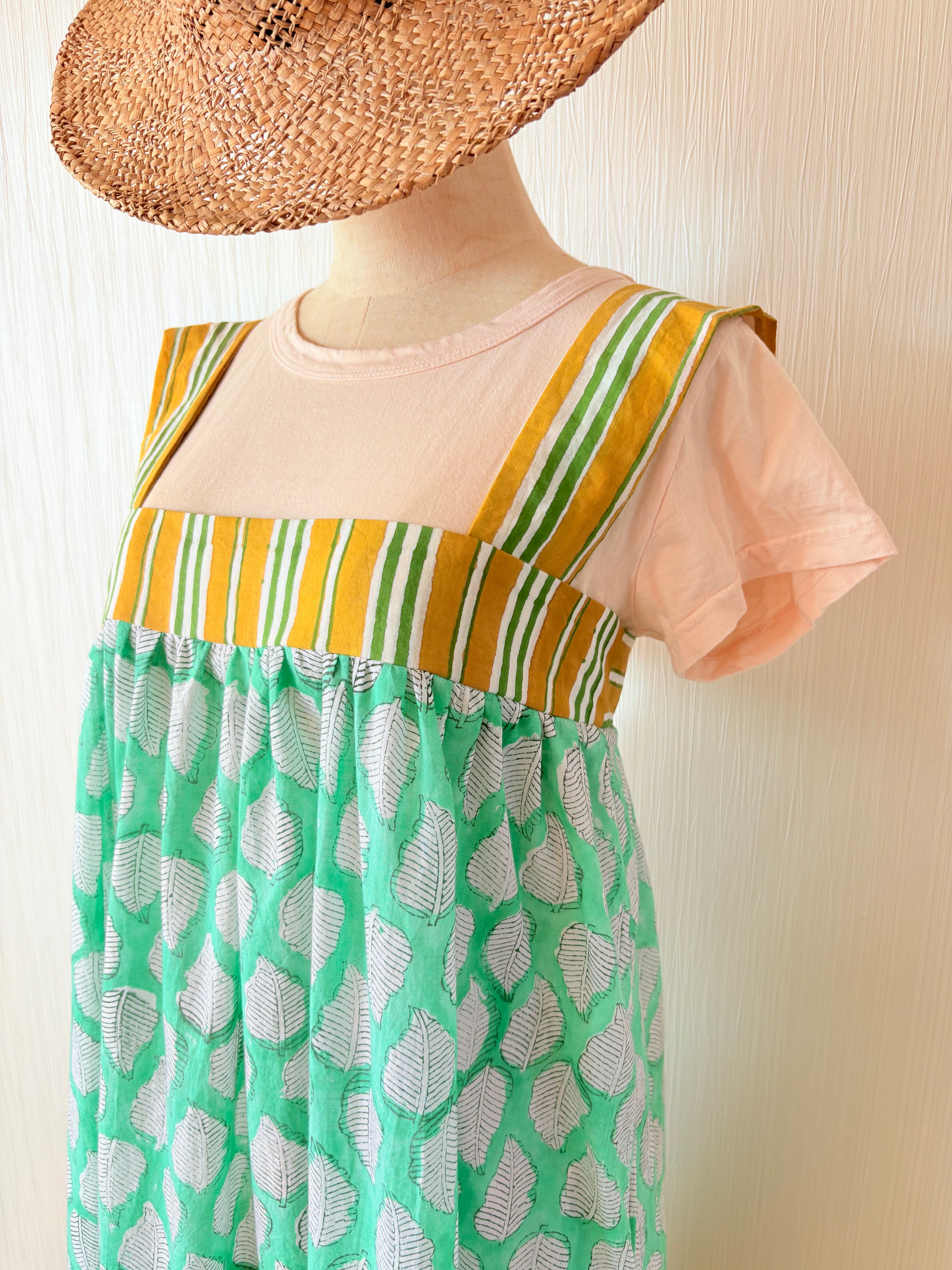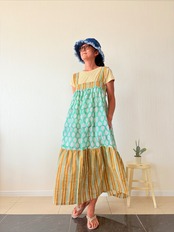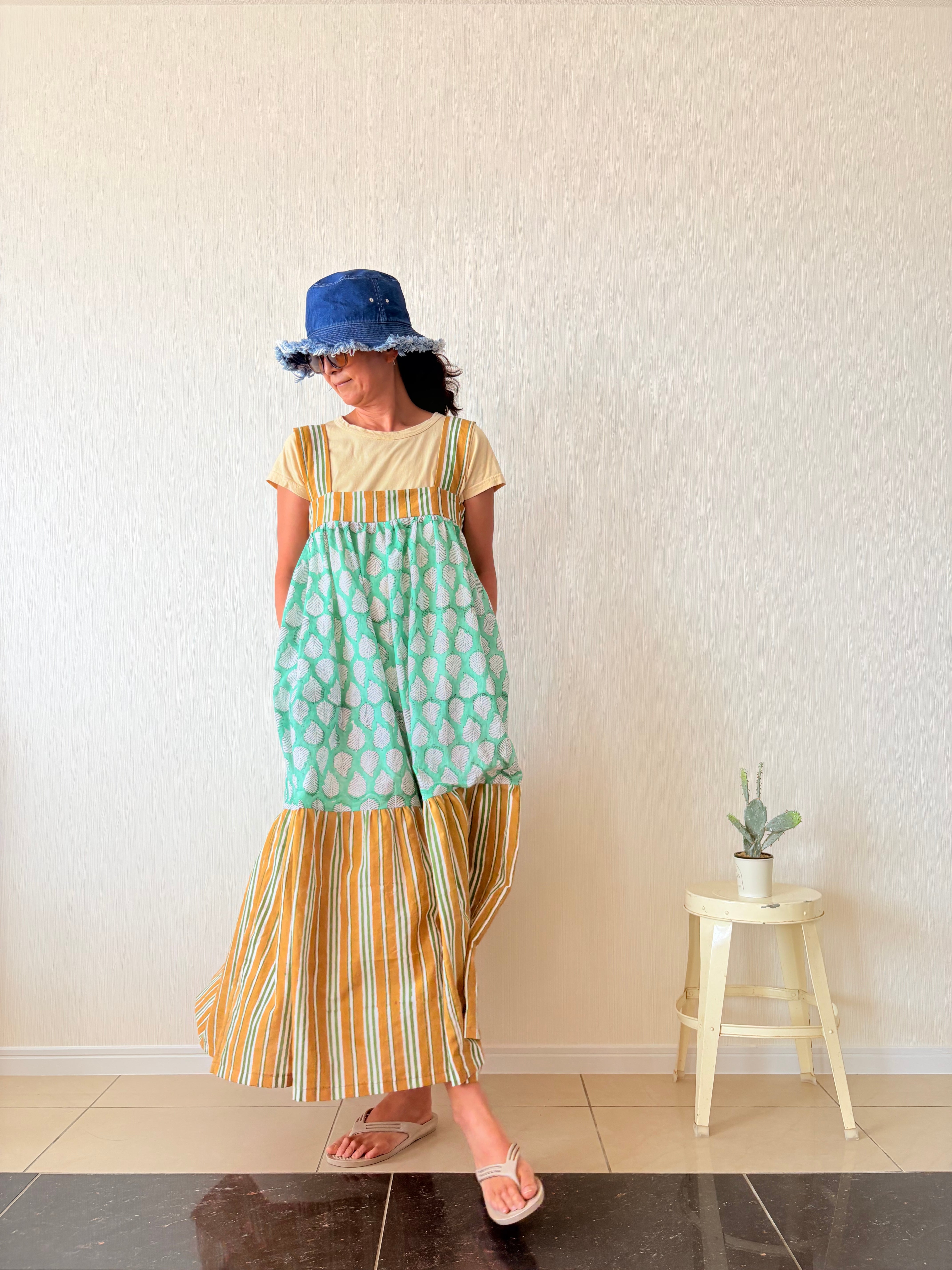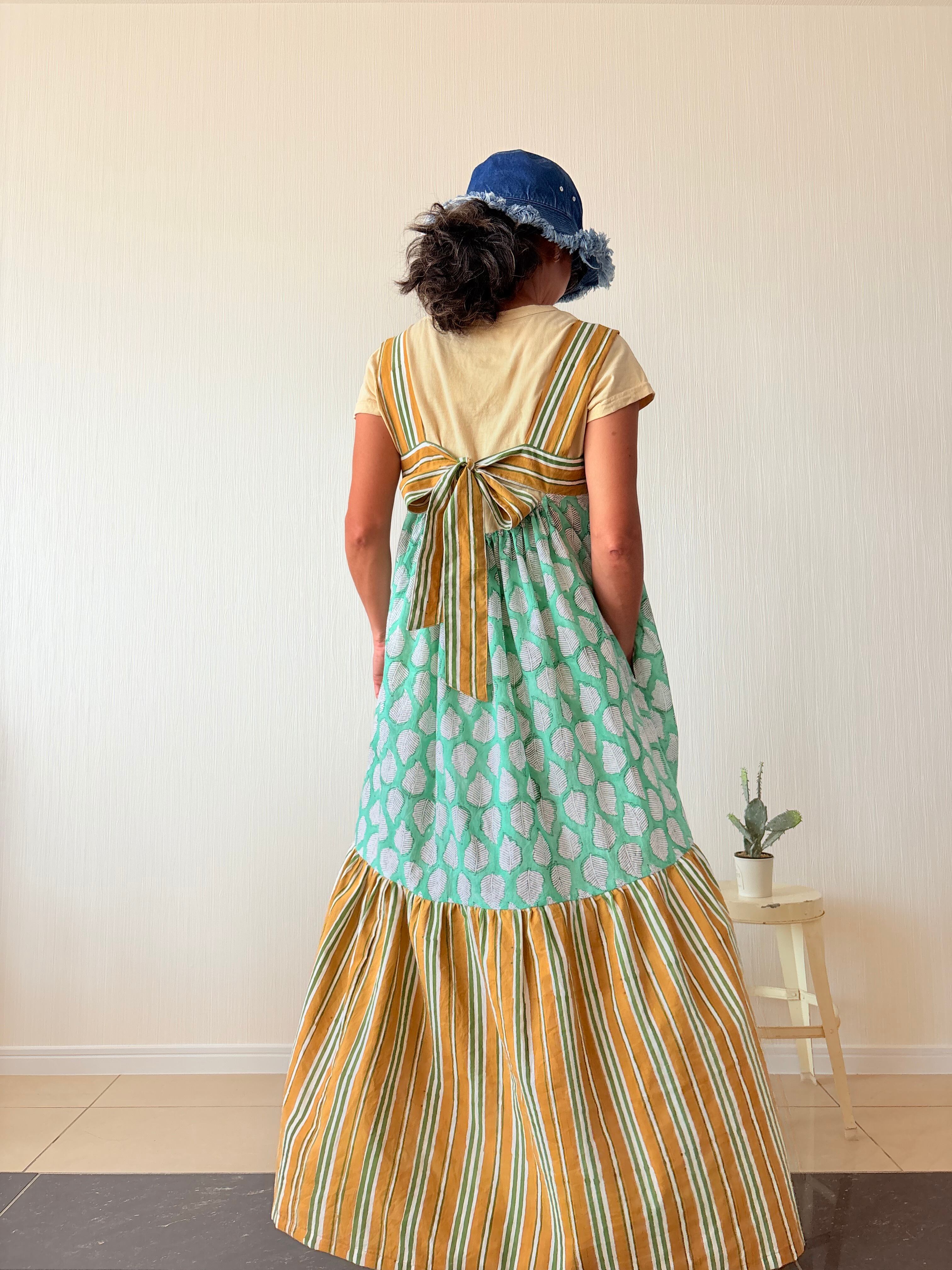 SOLD OUT / インド綿 || バックリボンティアードワンピース || ブロックプリント