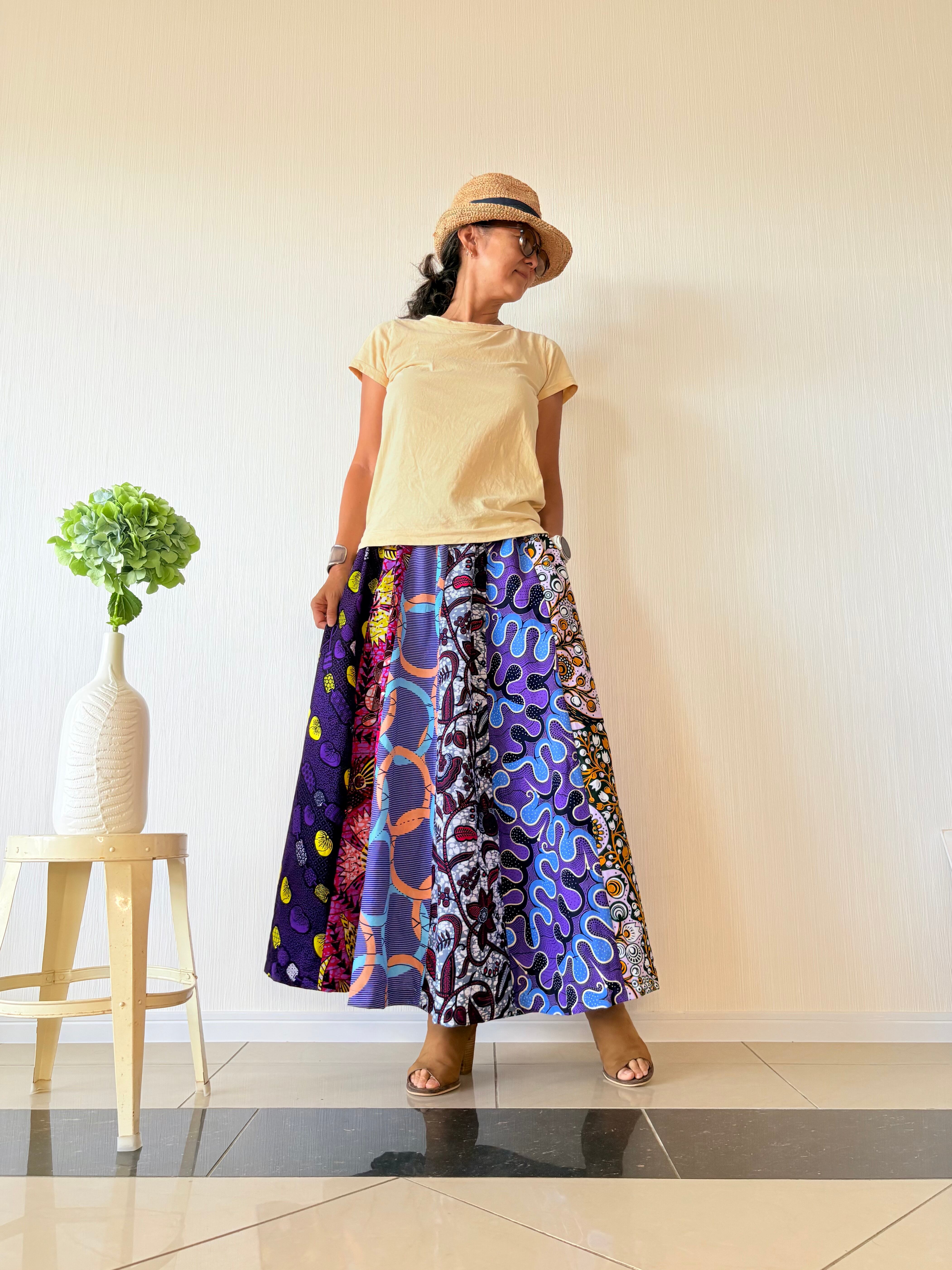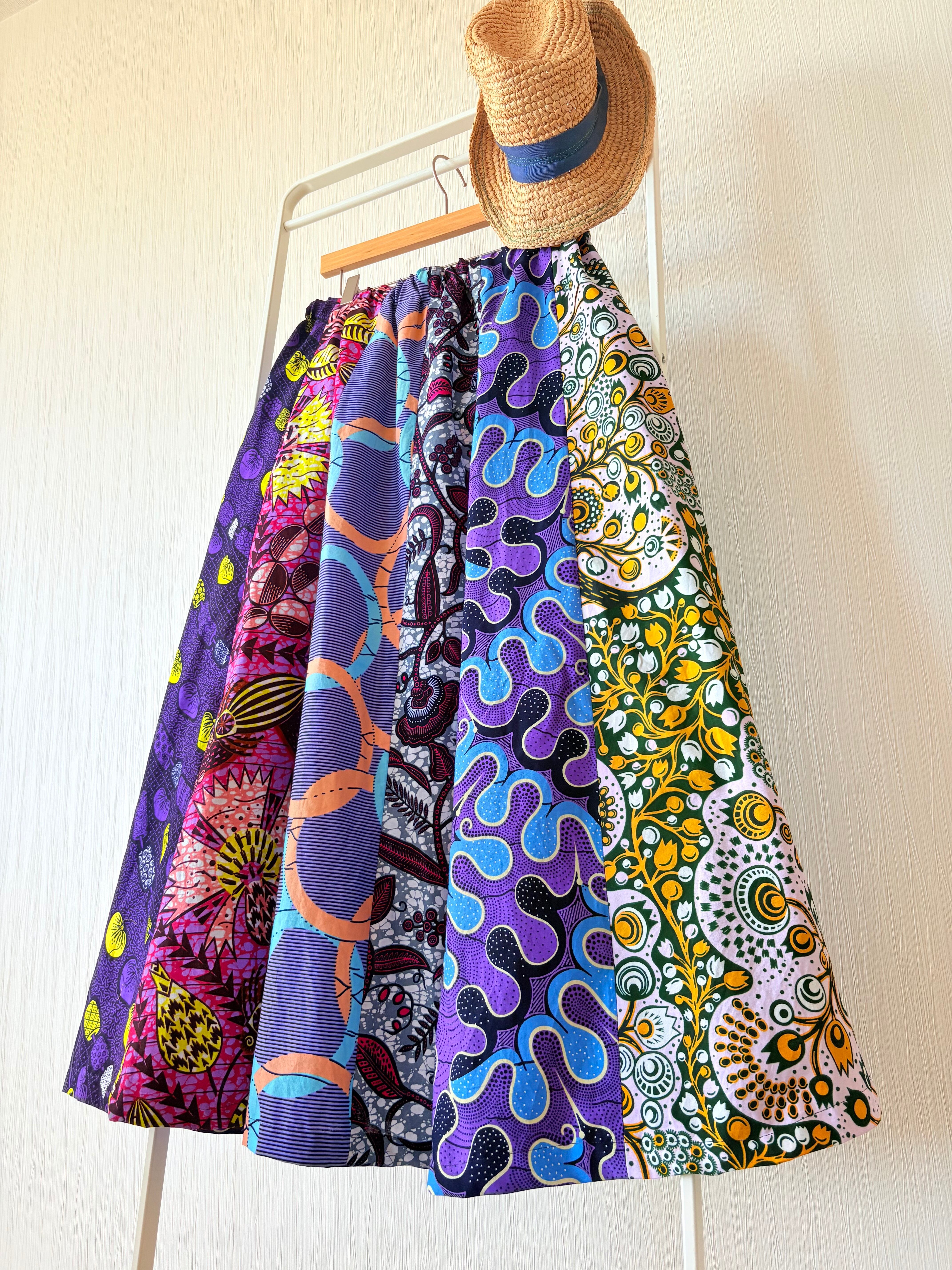 ◆アフリカ布 6枚接ぎスカート 90cm(丈直し可)