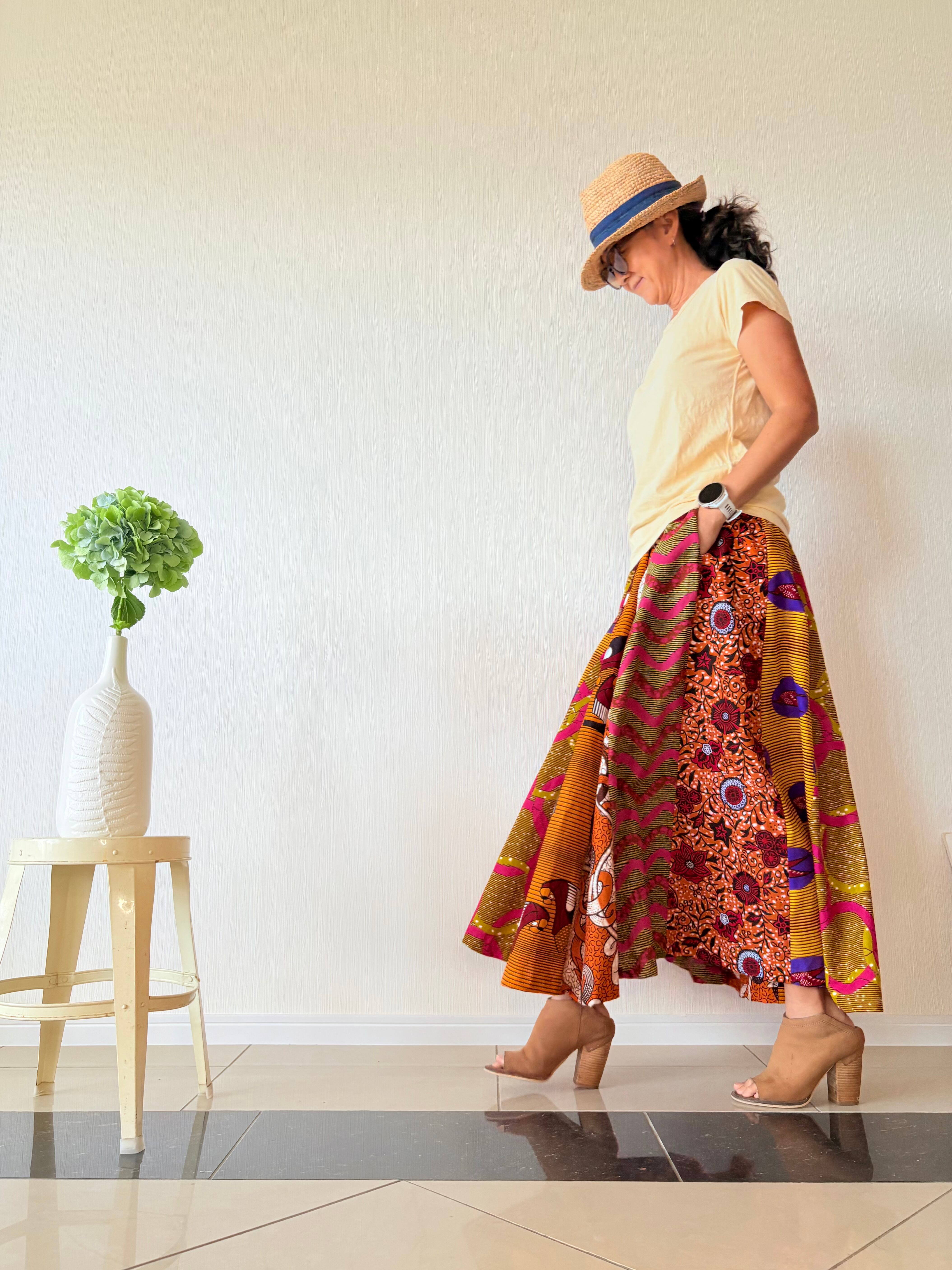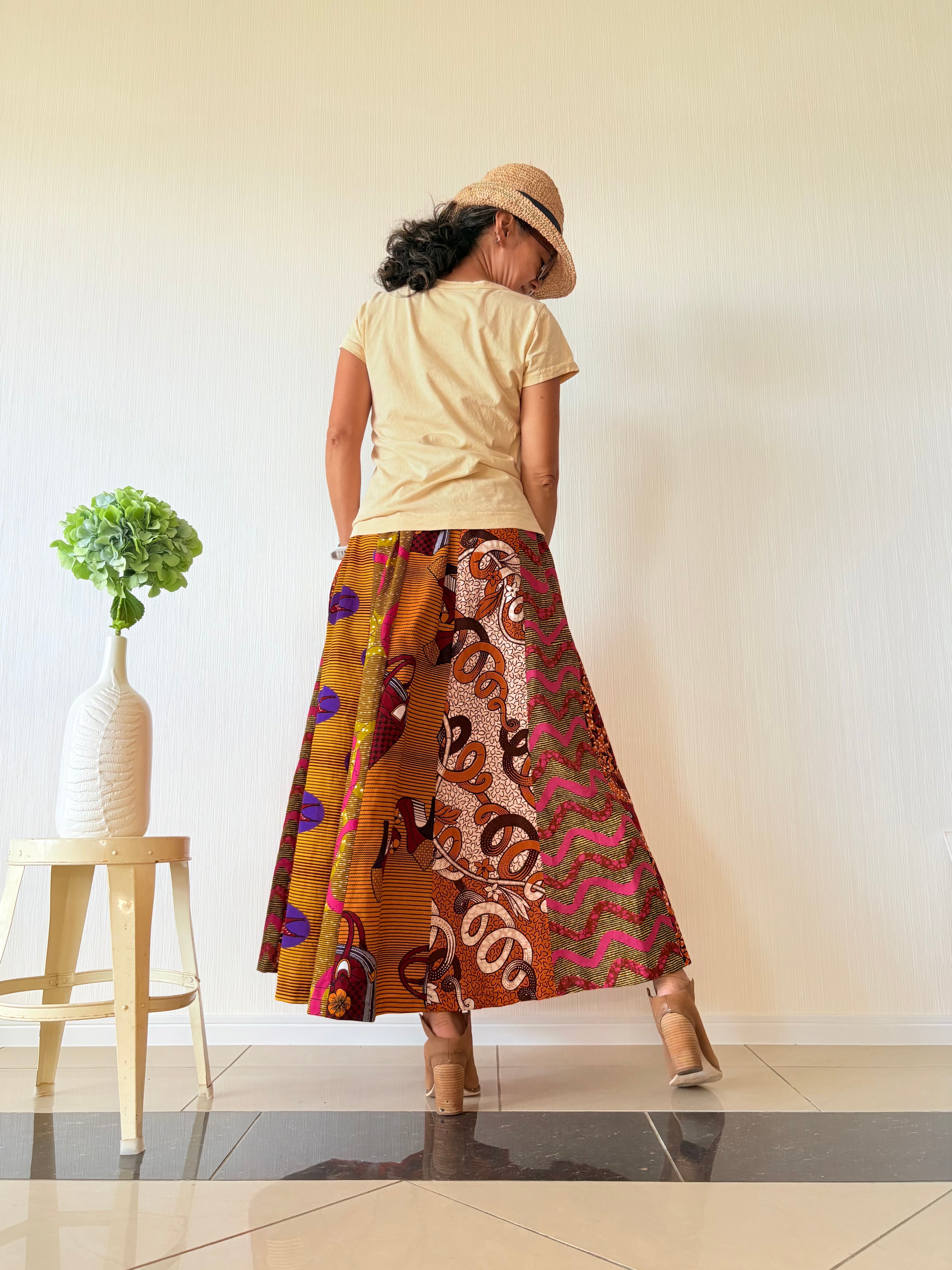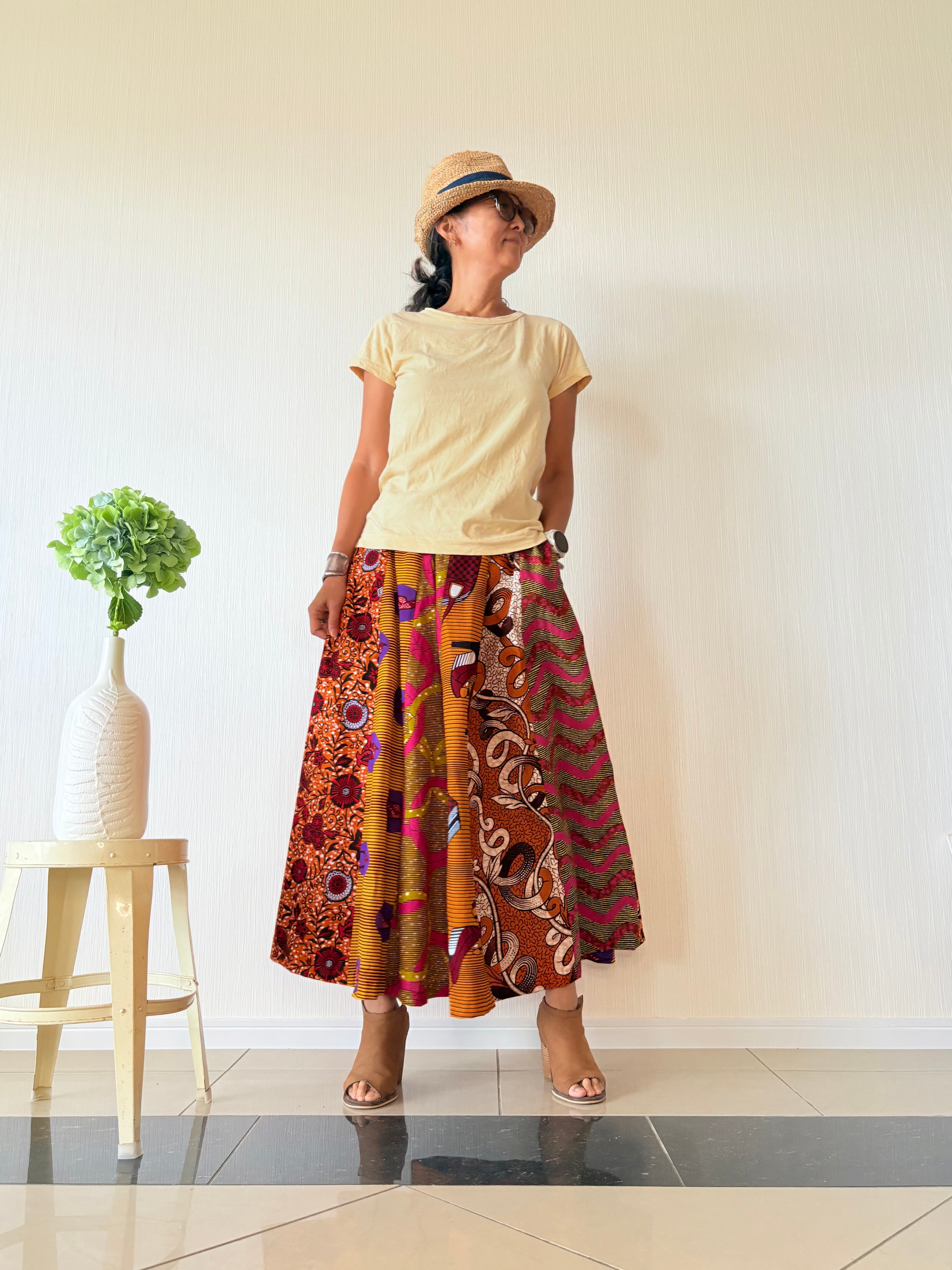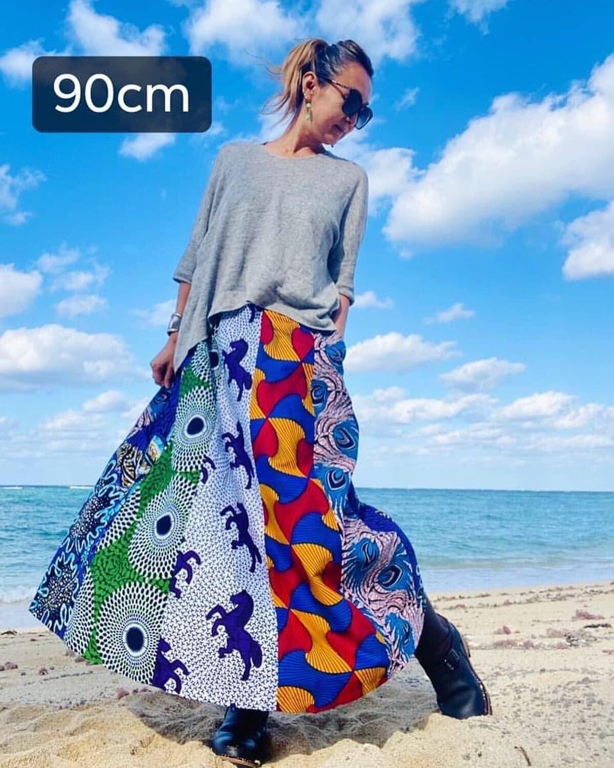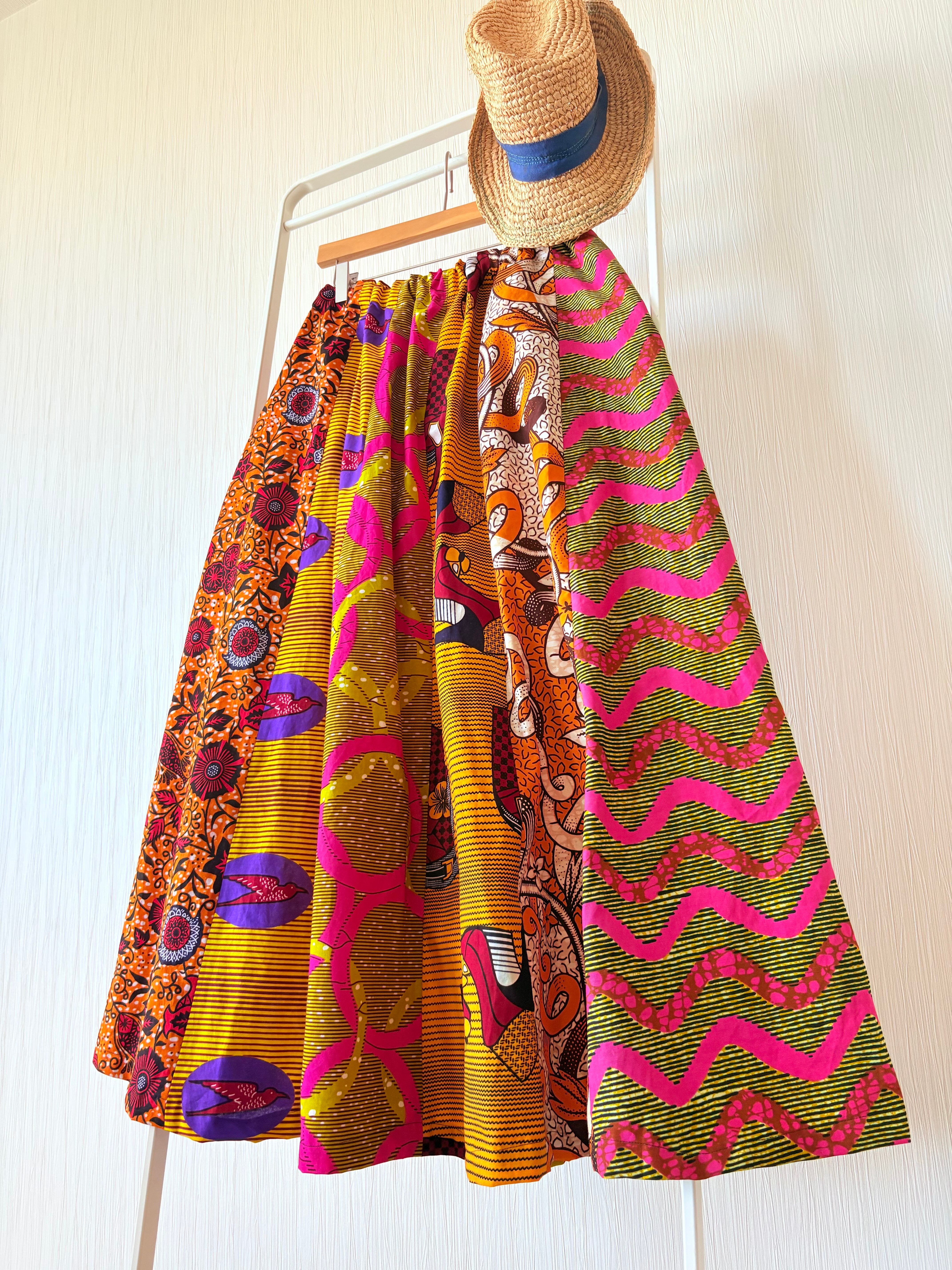 ◆アフリカ布 6枚接ぎスカート 90cm(丈直し可)
