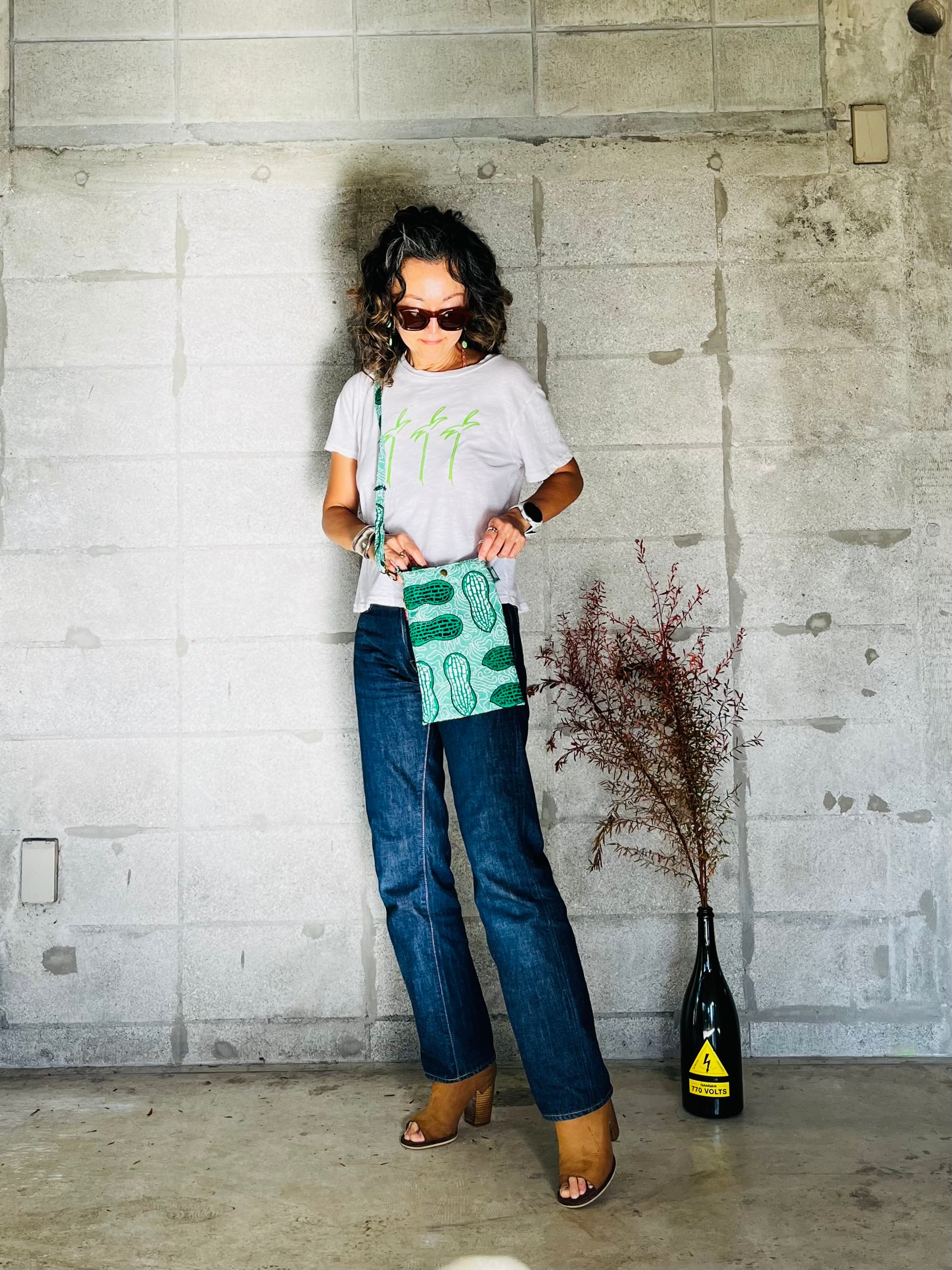最大8種の異なる布の組み合わせを楽しめる、気分の上がるショルダー付きミニ手提げです。
