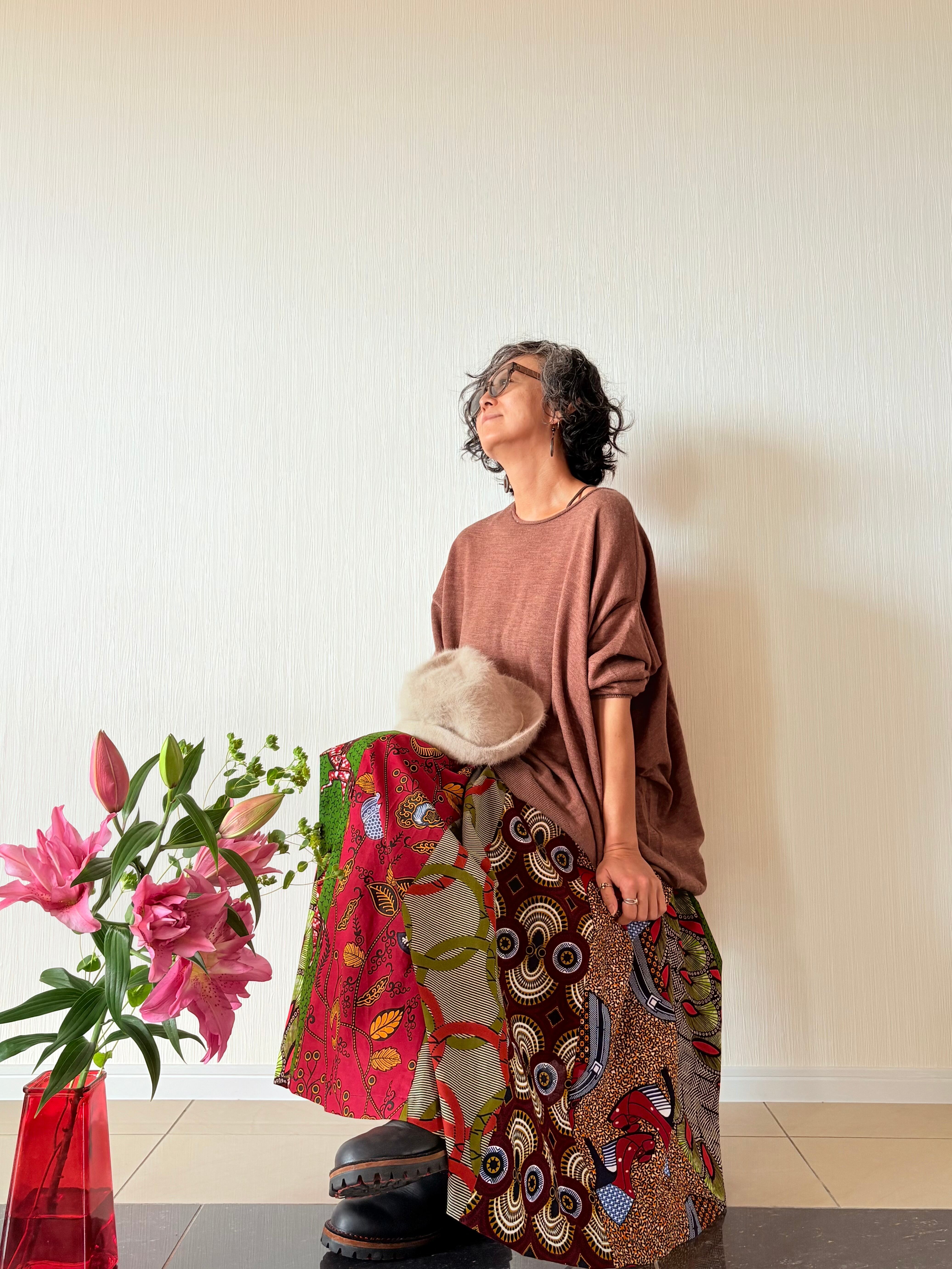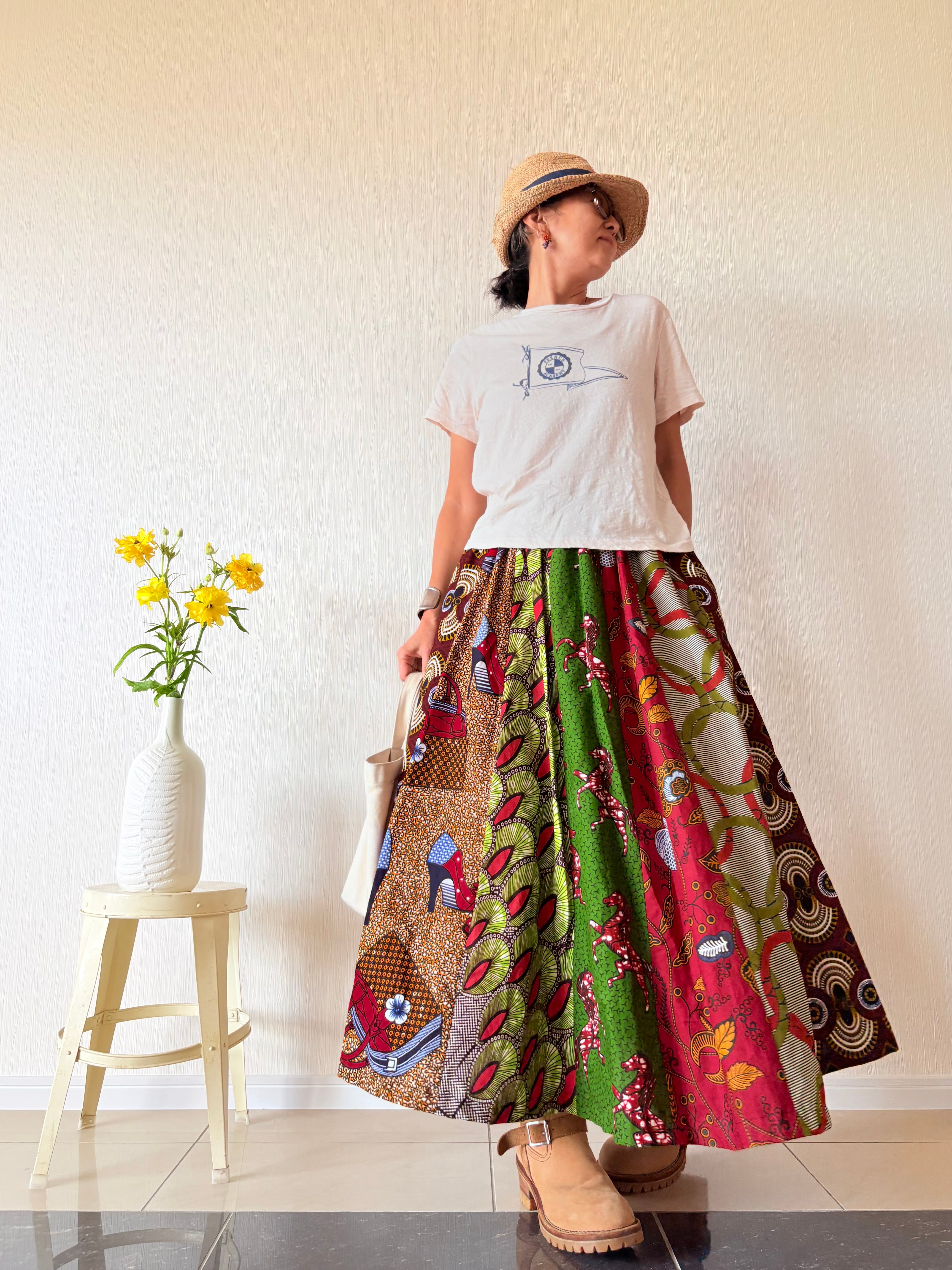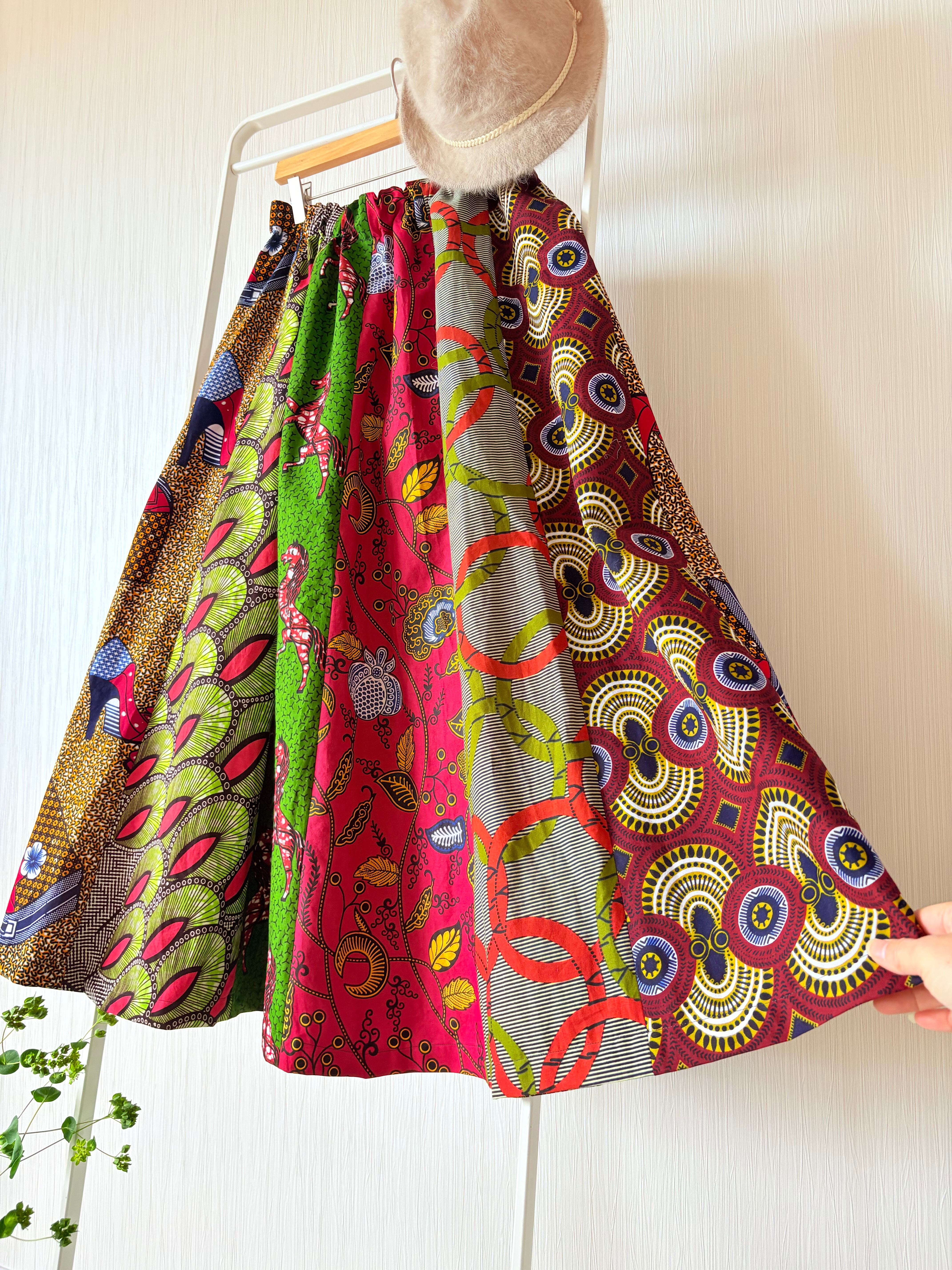 ◆アフリカ布 6枚接ぎスカート 90cm(丈直し可)