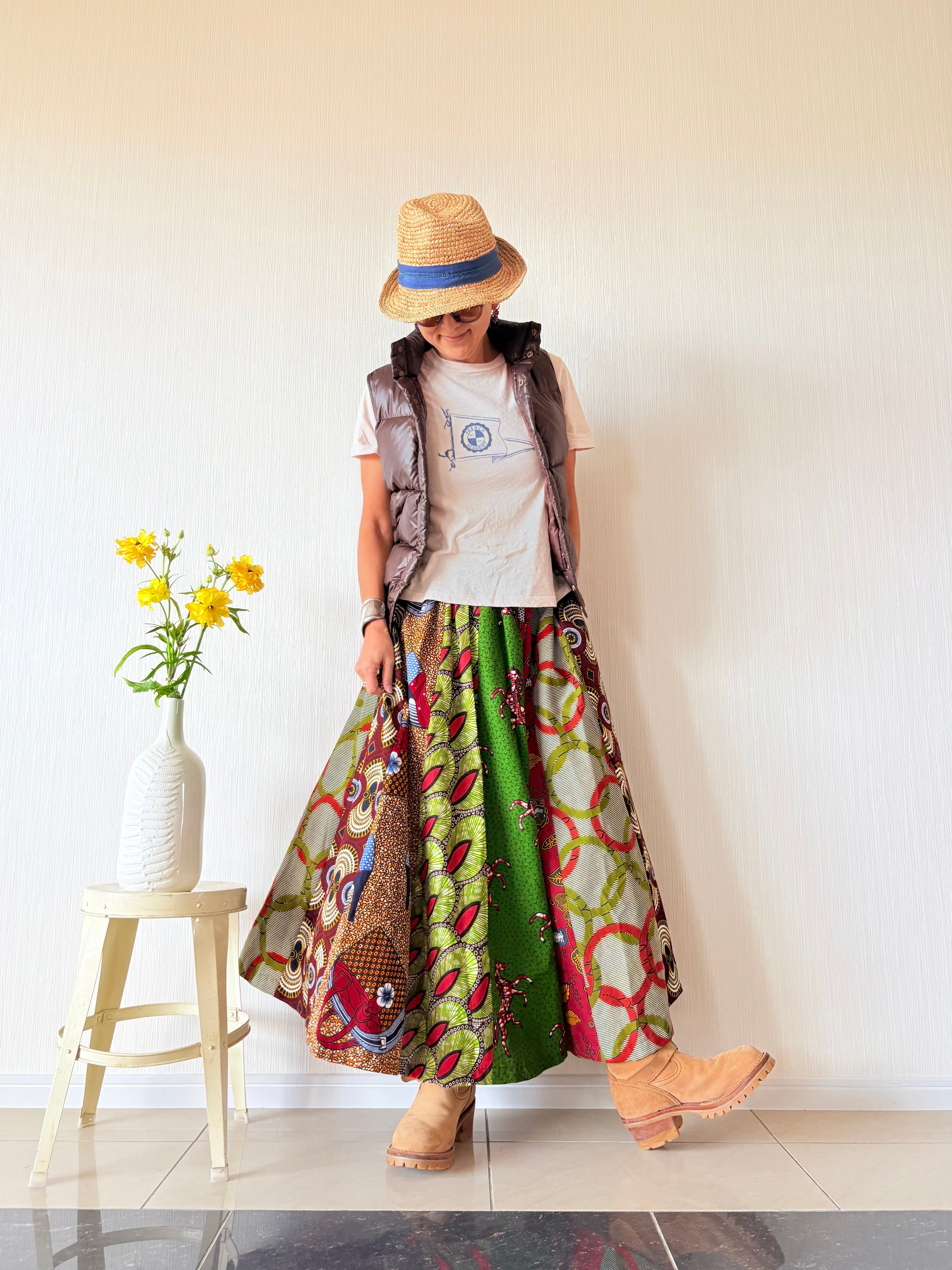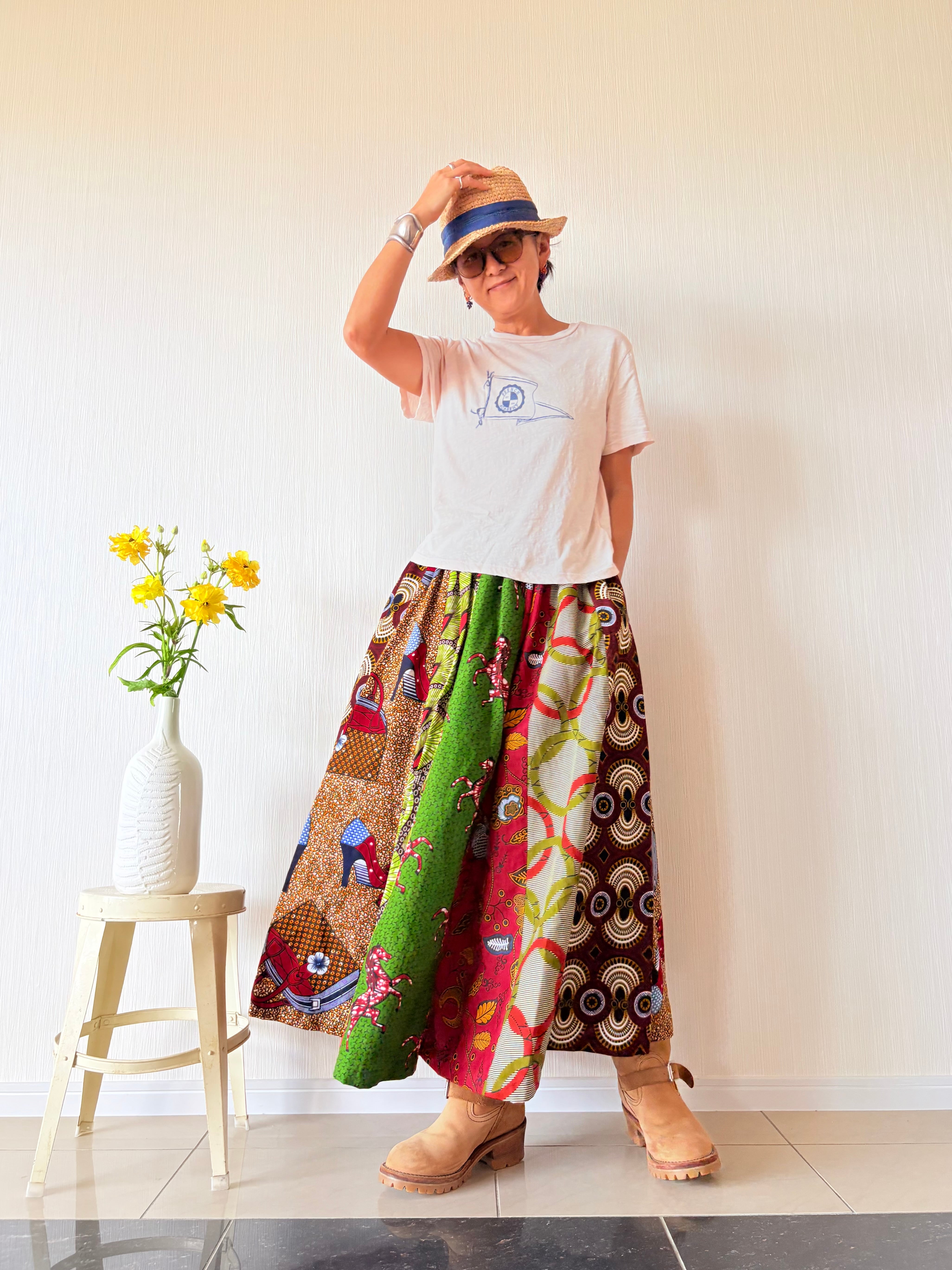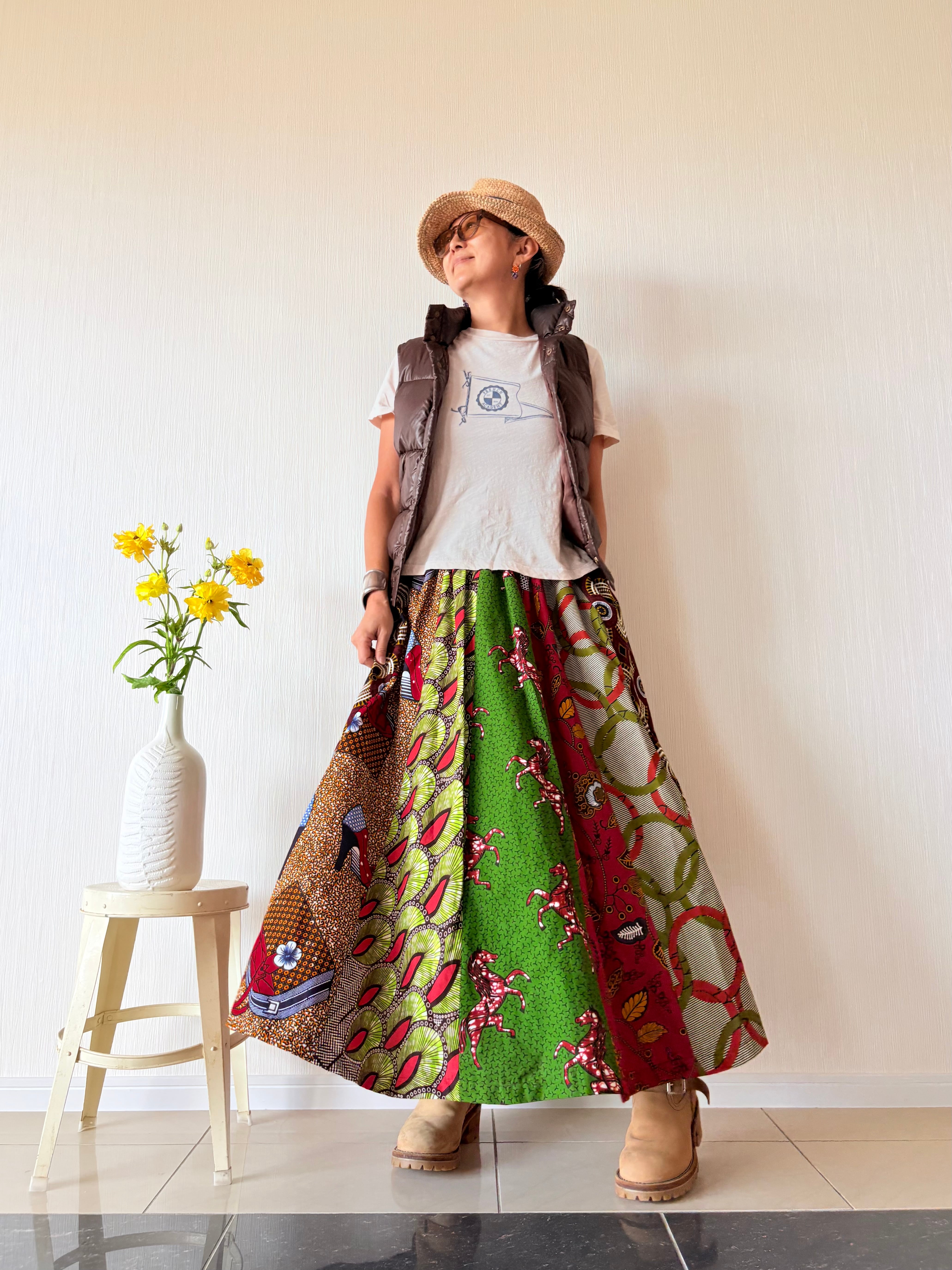 ◆アフリカ布 6枚接ぎスカート 90cm(丈直し可)