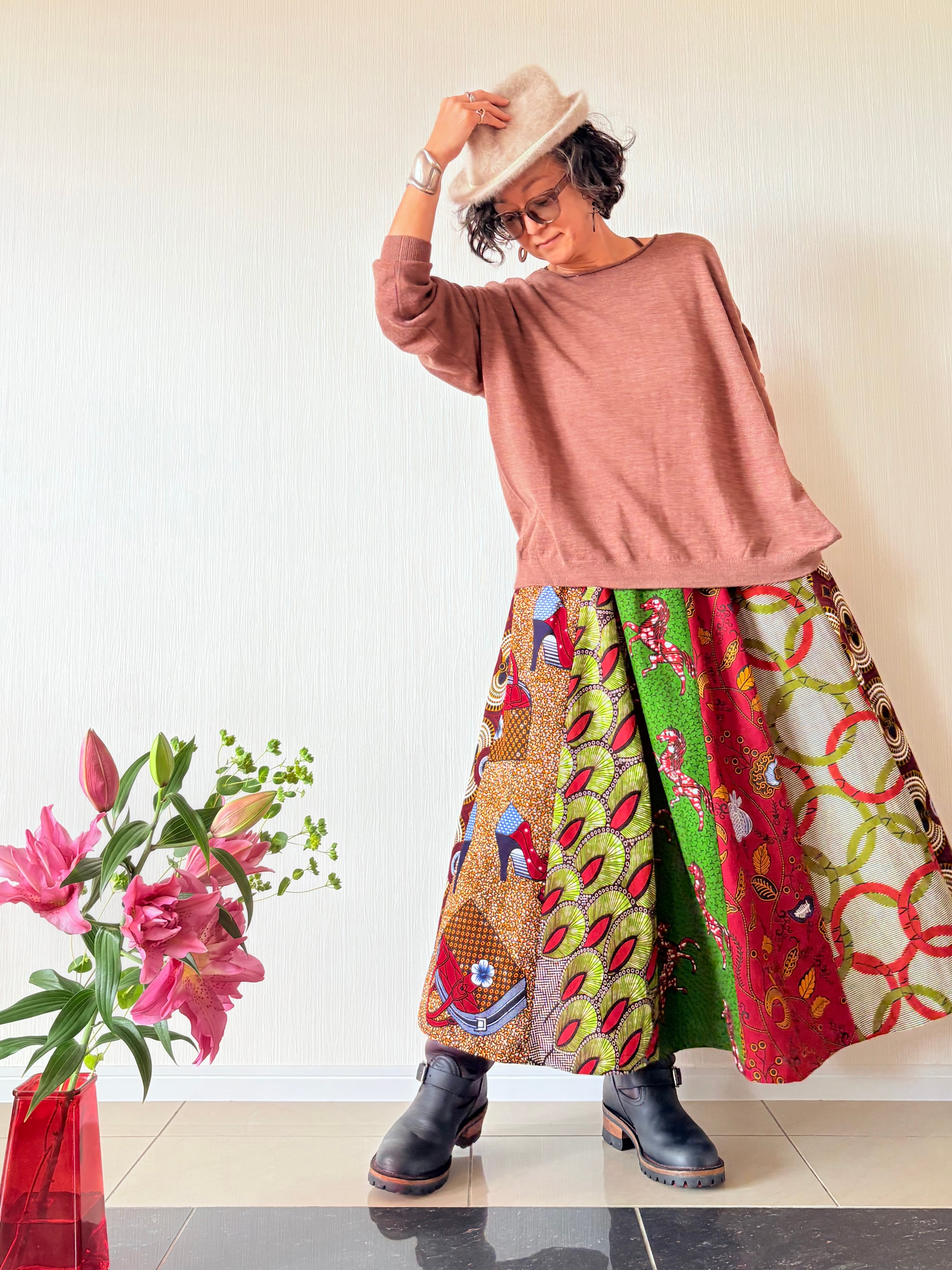 同じ柄の組み合わせのスカートは複数製作いたしません。