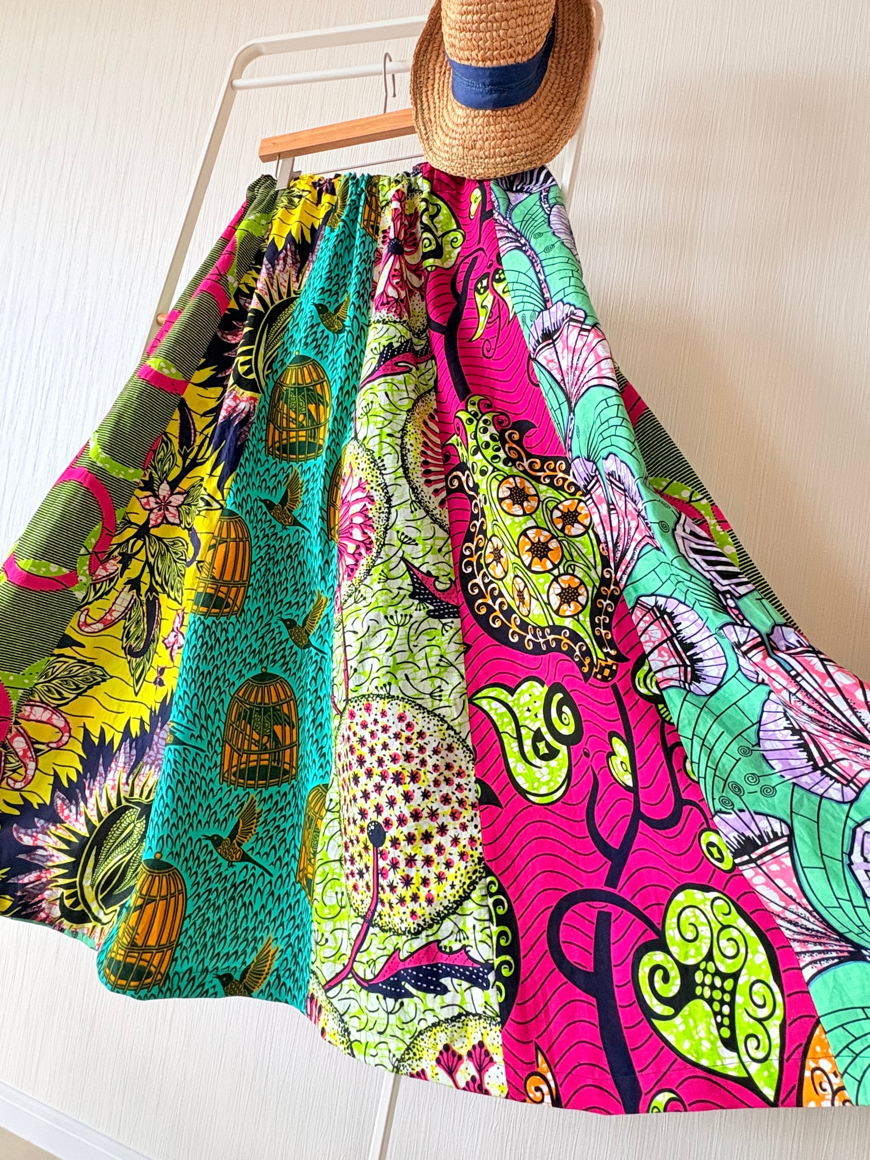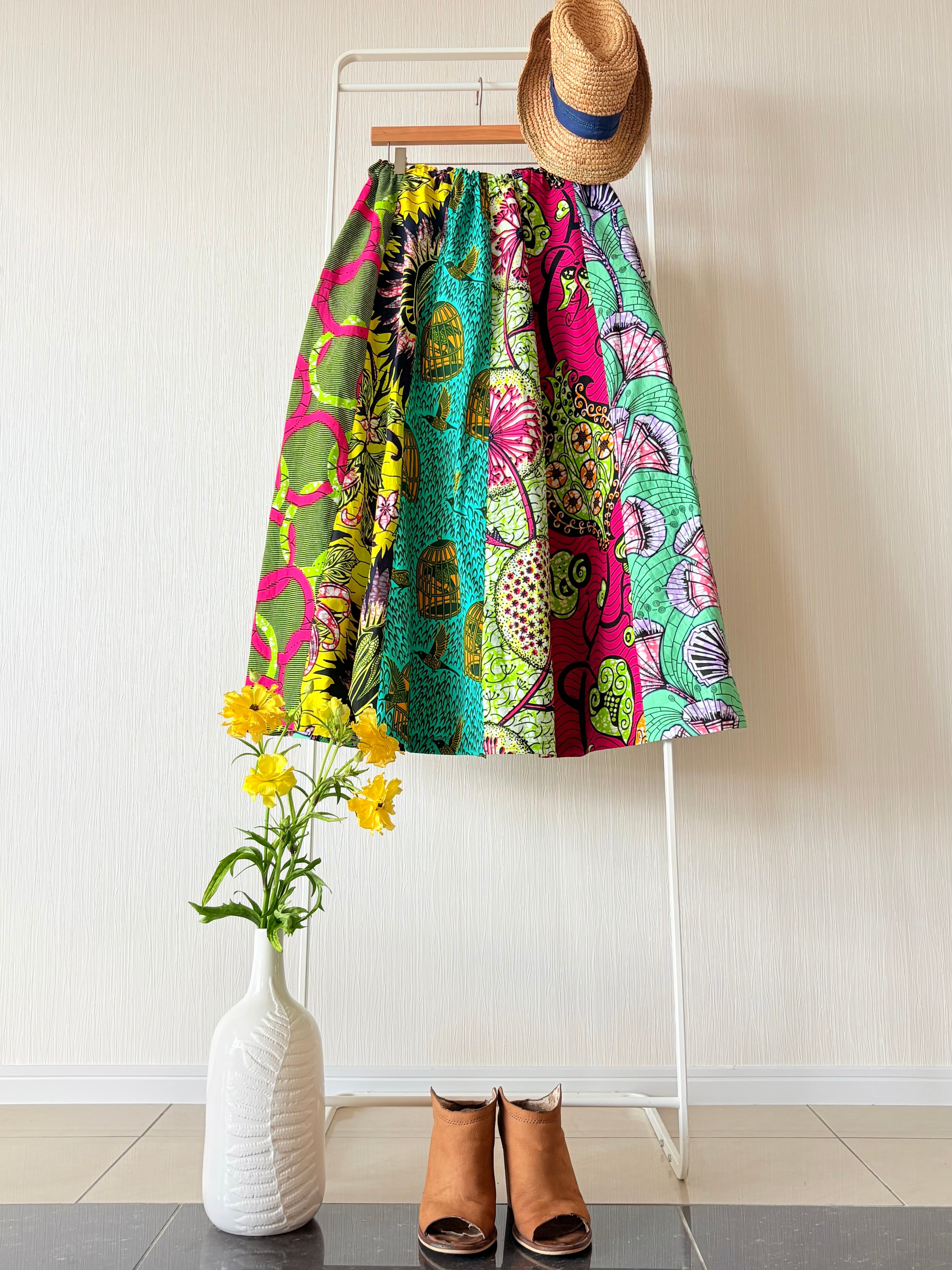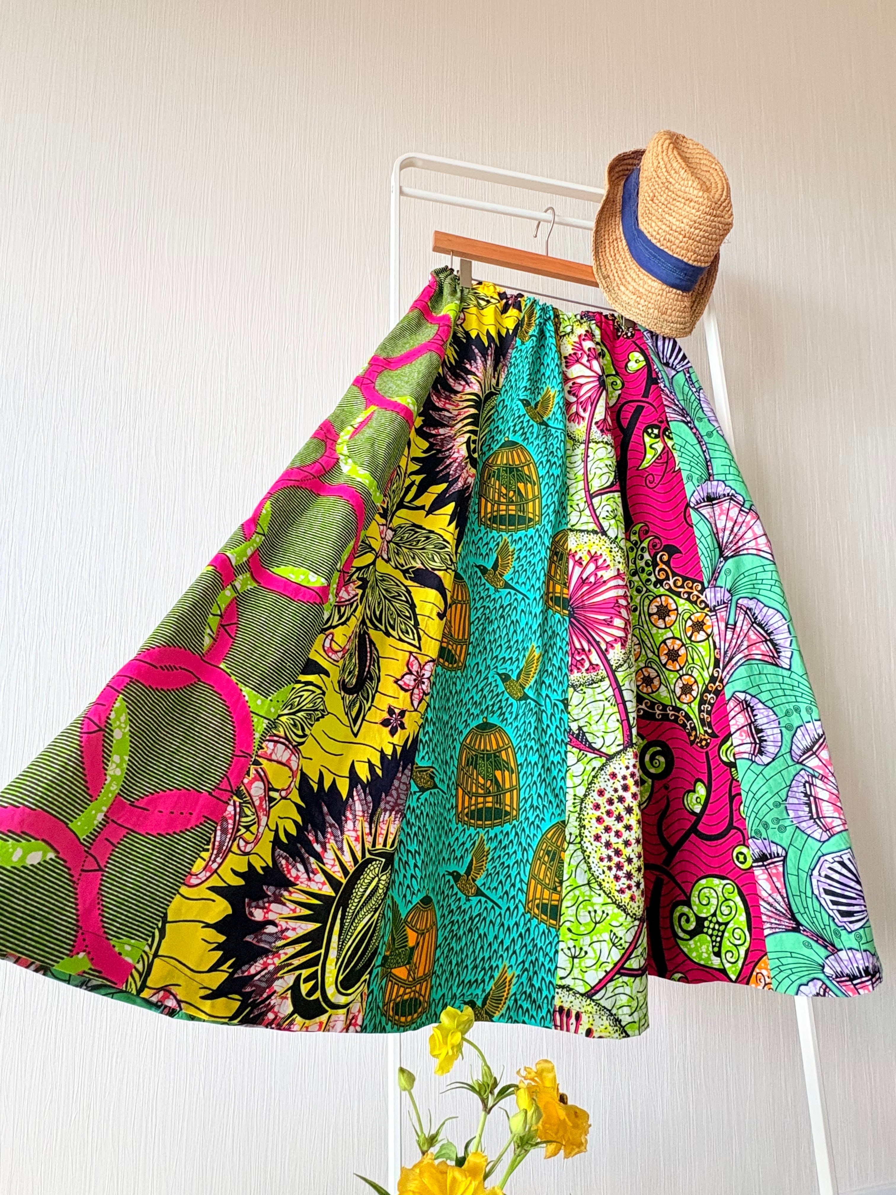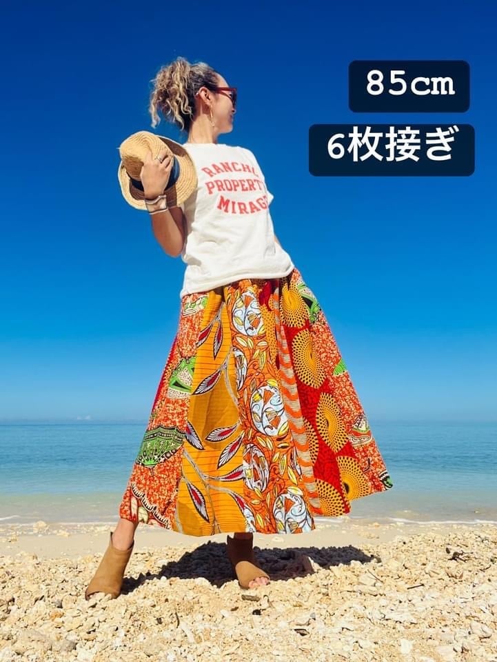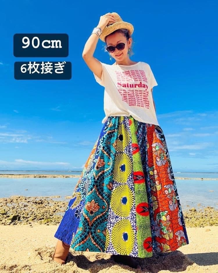 ◆アフリカ布 6枚接ぎスカート 90cm(丈直し可)