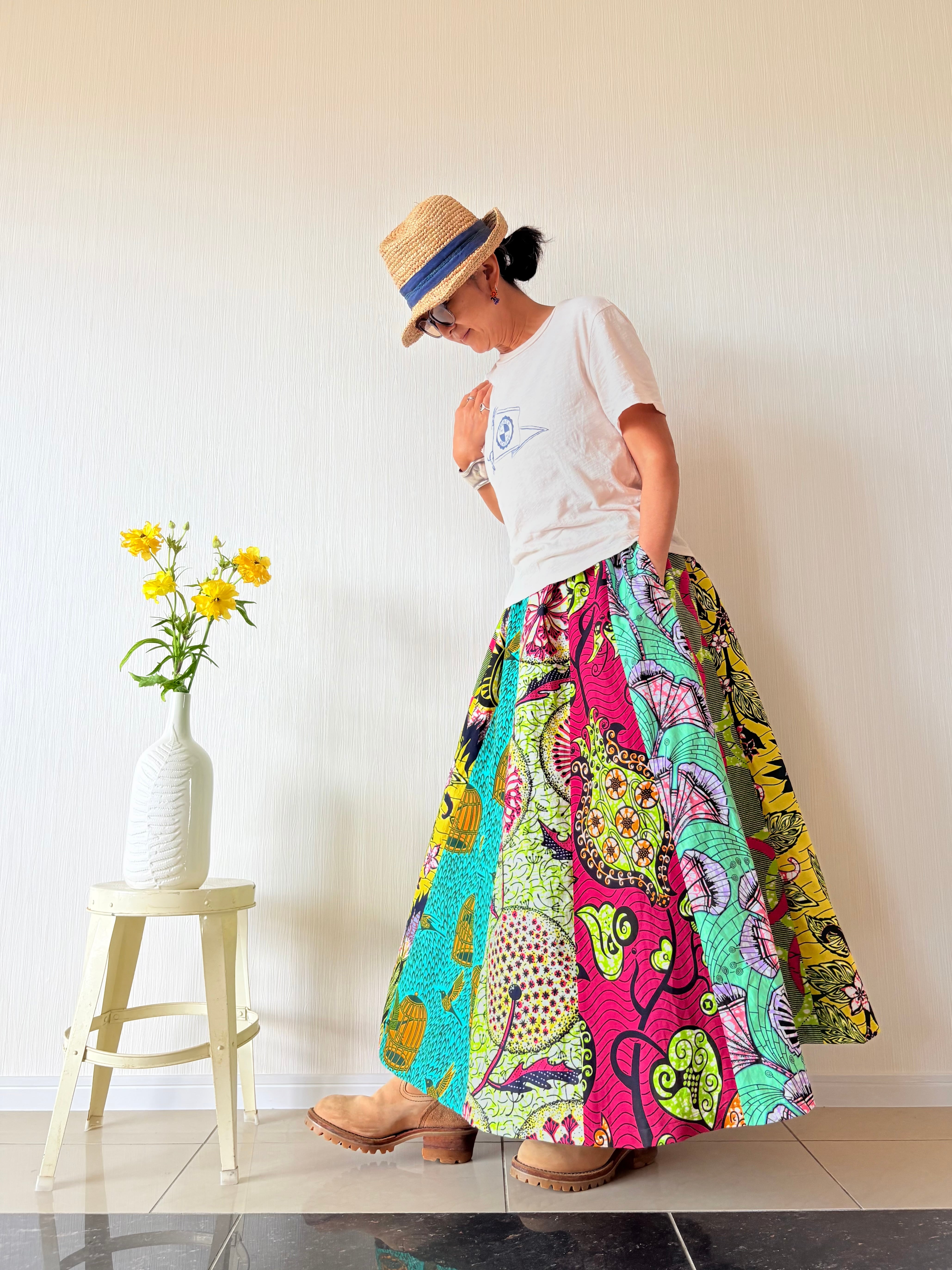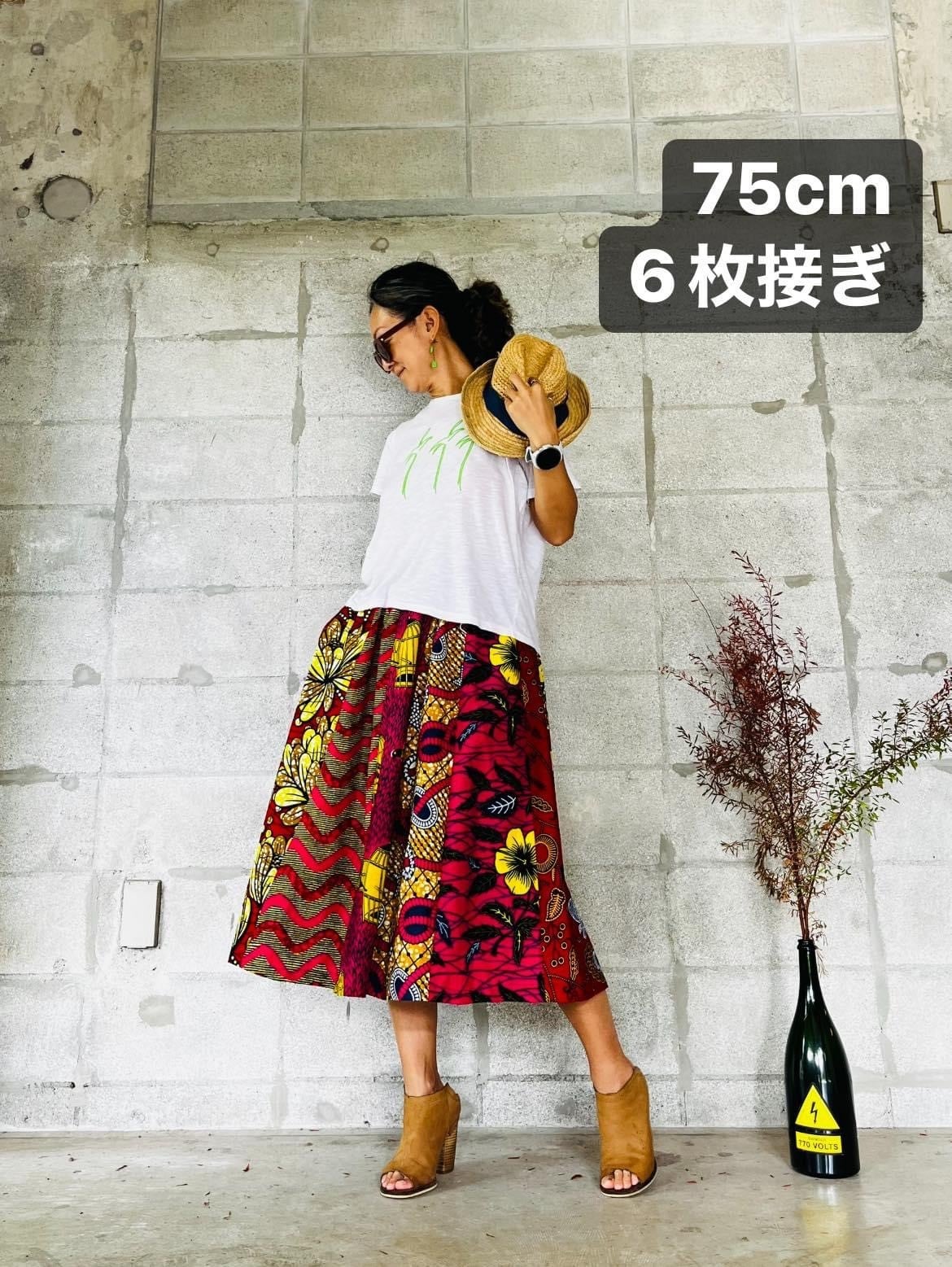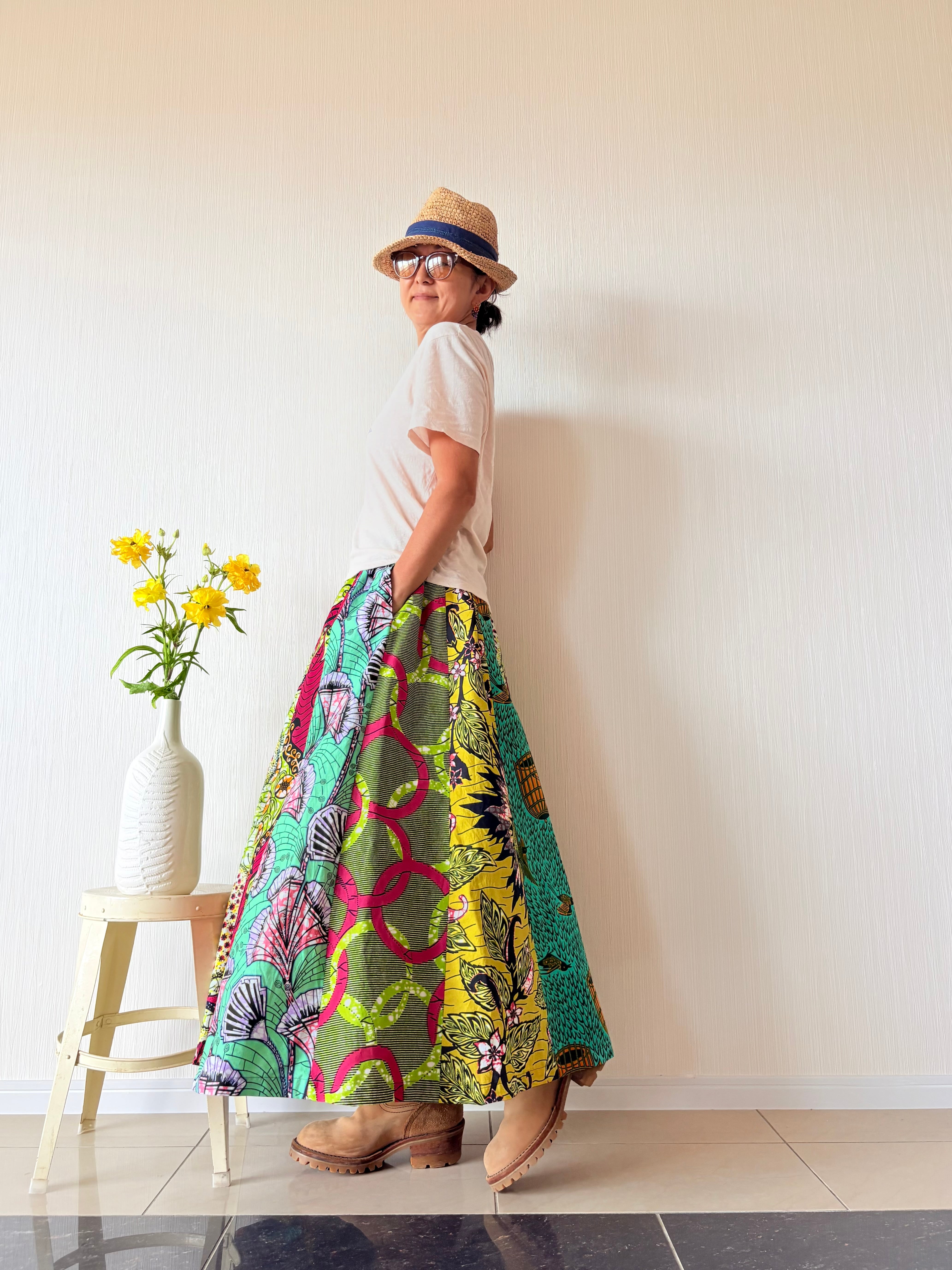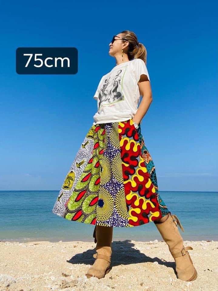 ◆アフリカ布 6枚接ぎスカート 90cm(丈直し可)