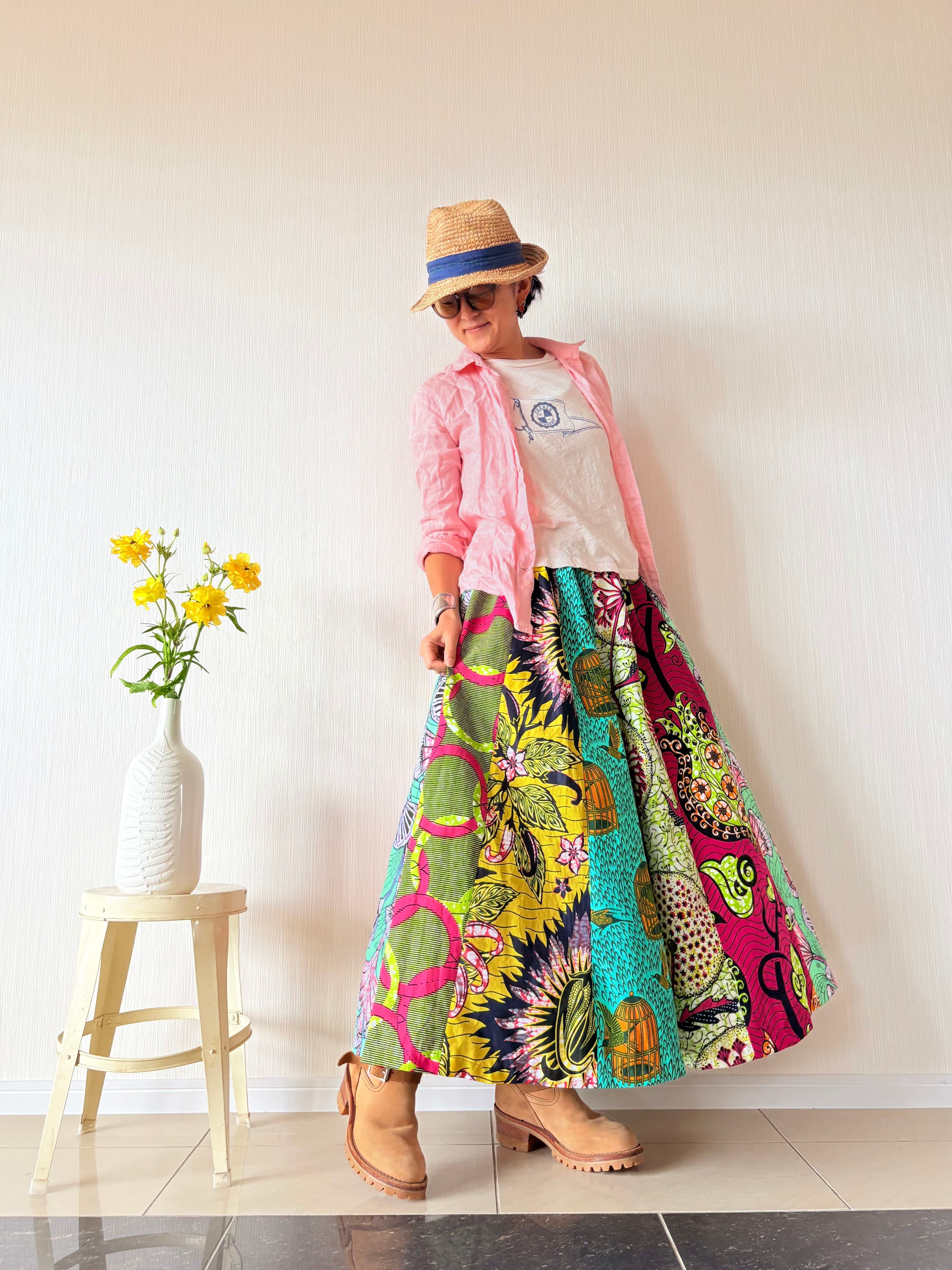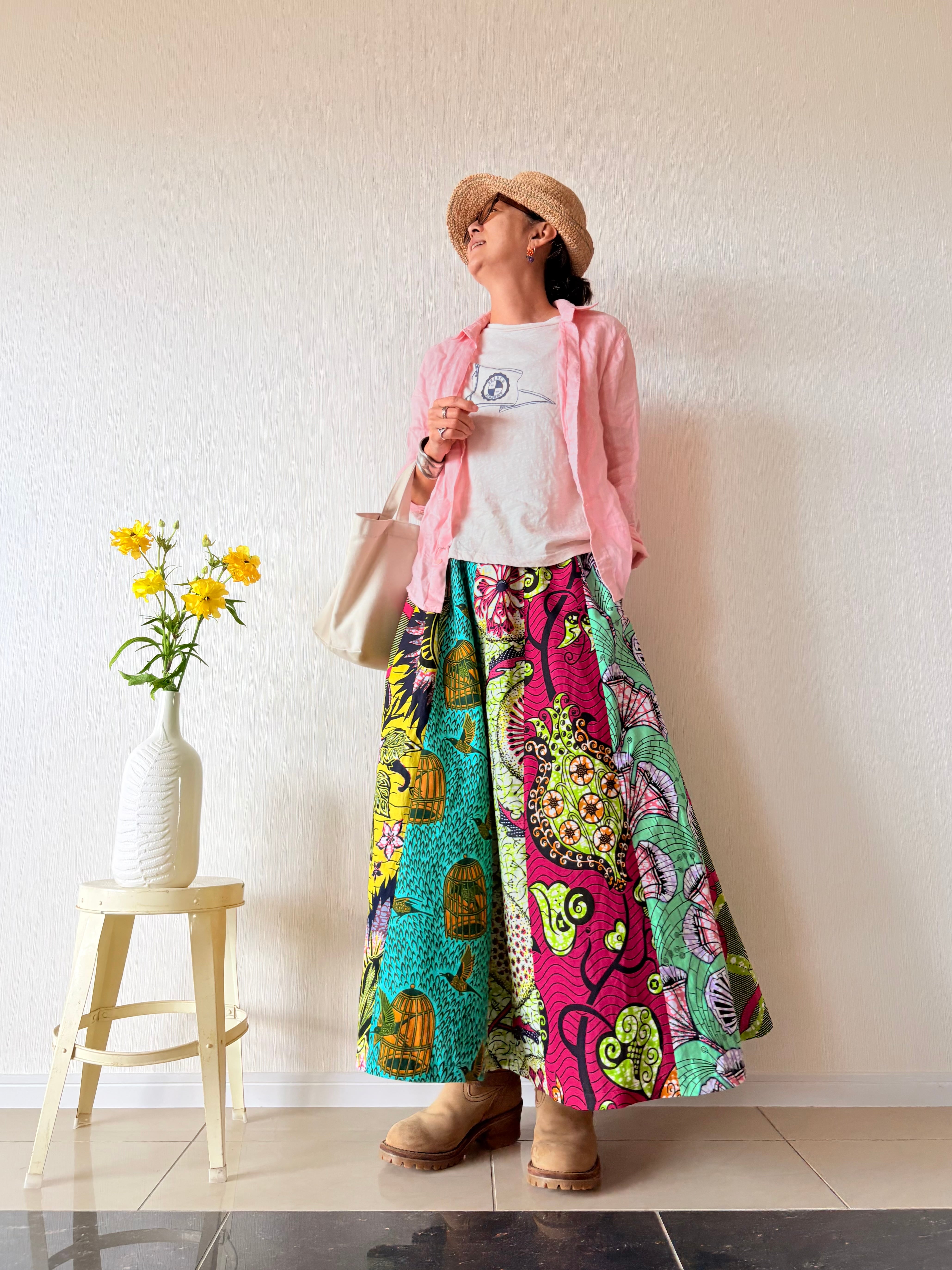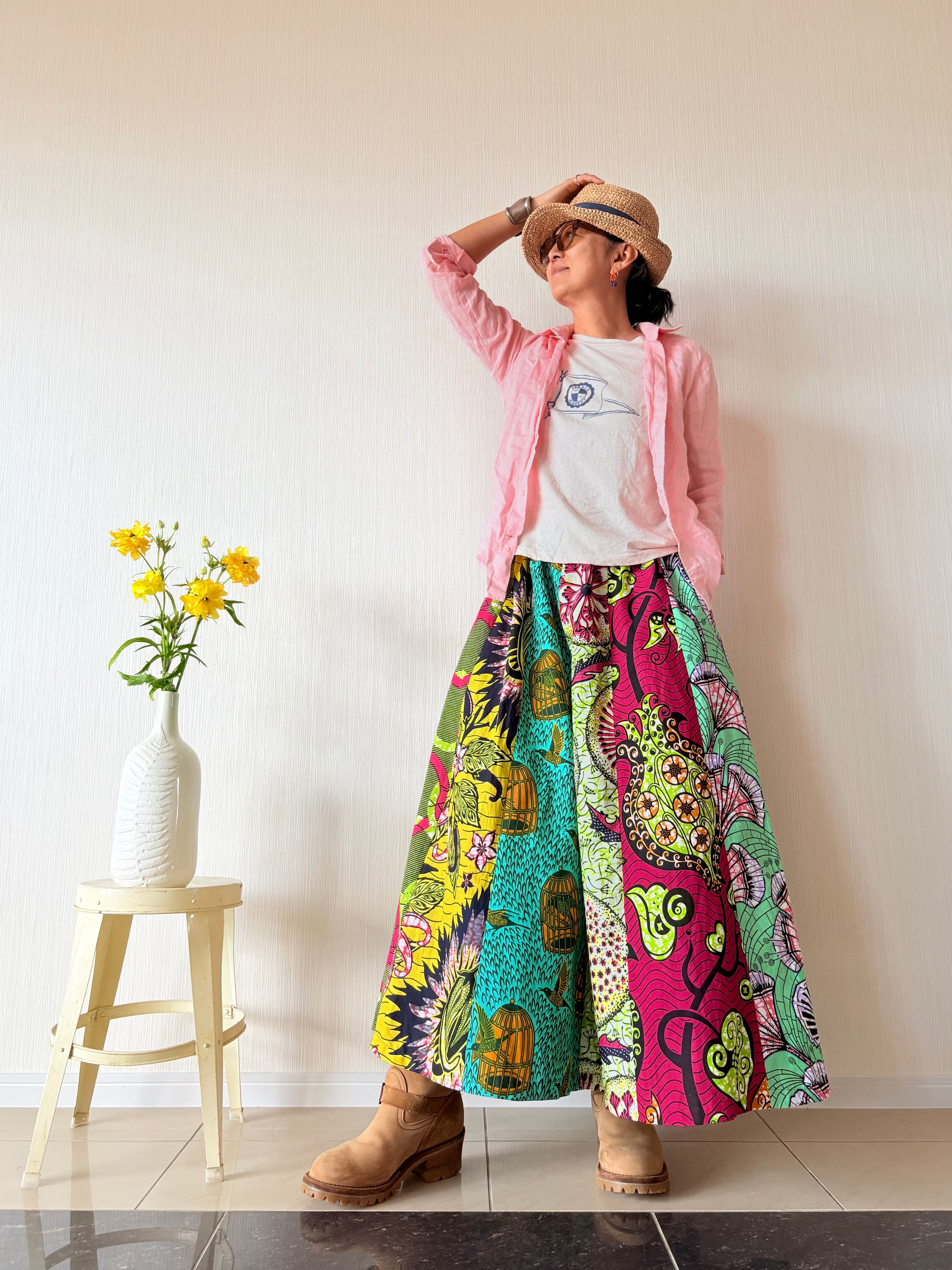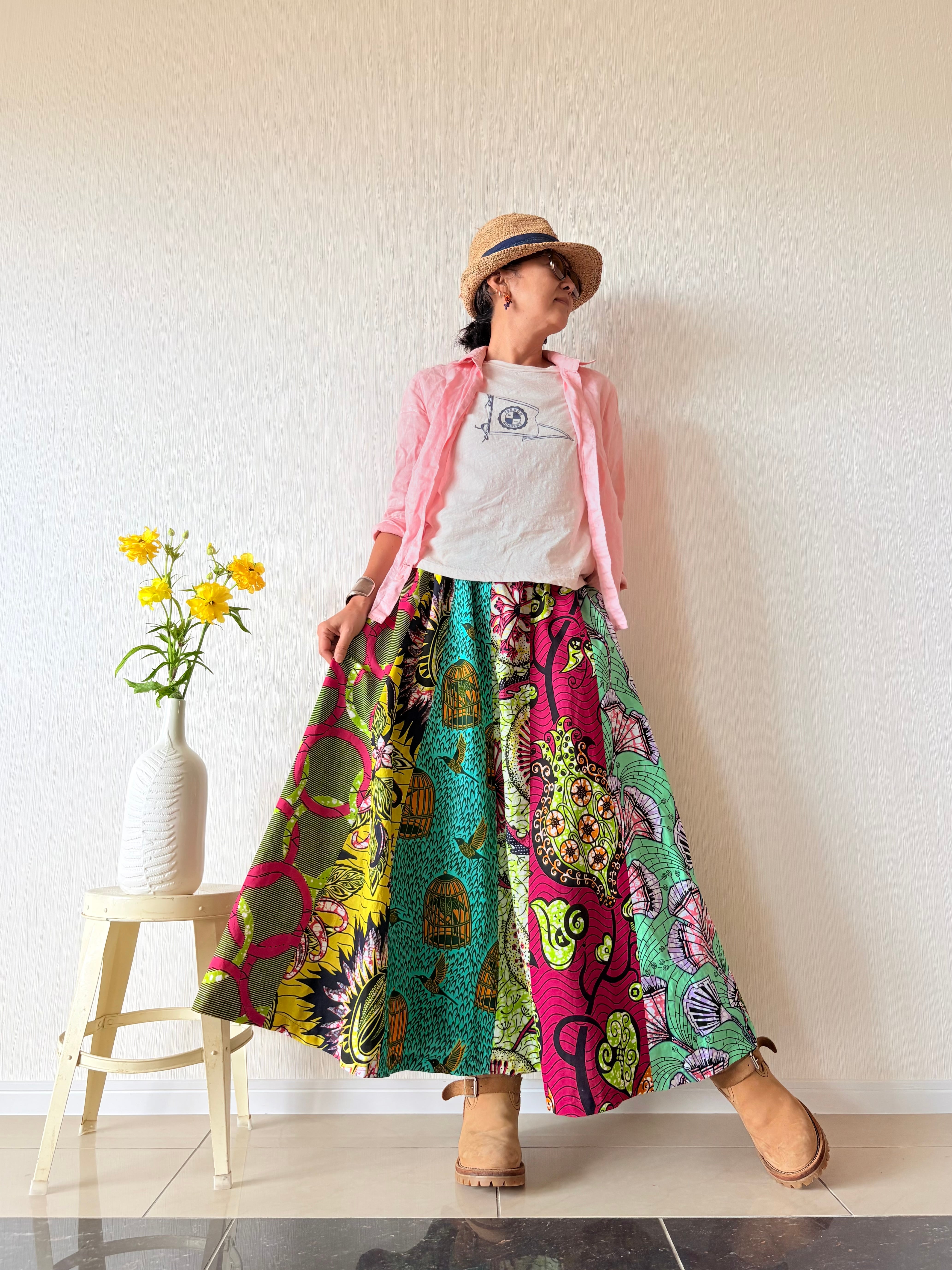 ◆アフリカ布 6枚接ぎスカート 90cm(丈直し可)