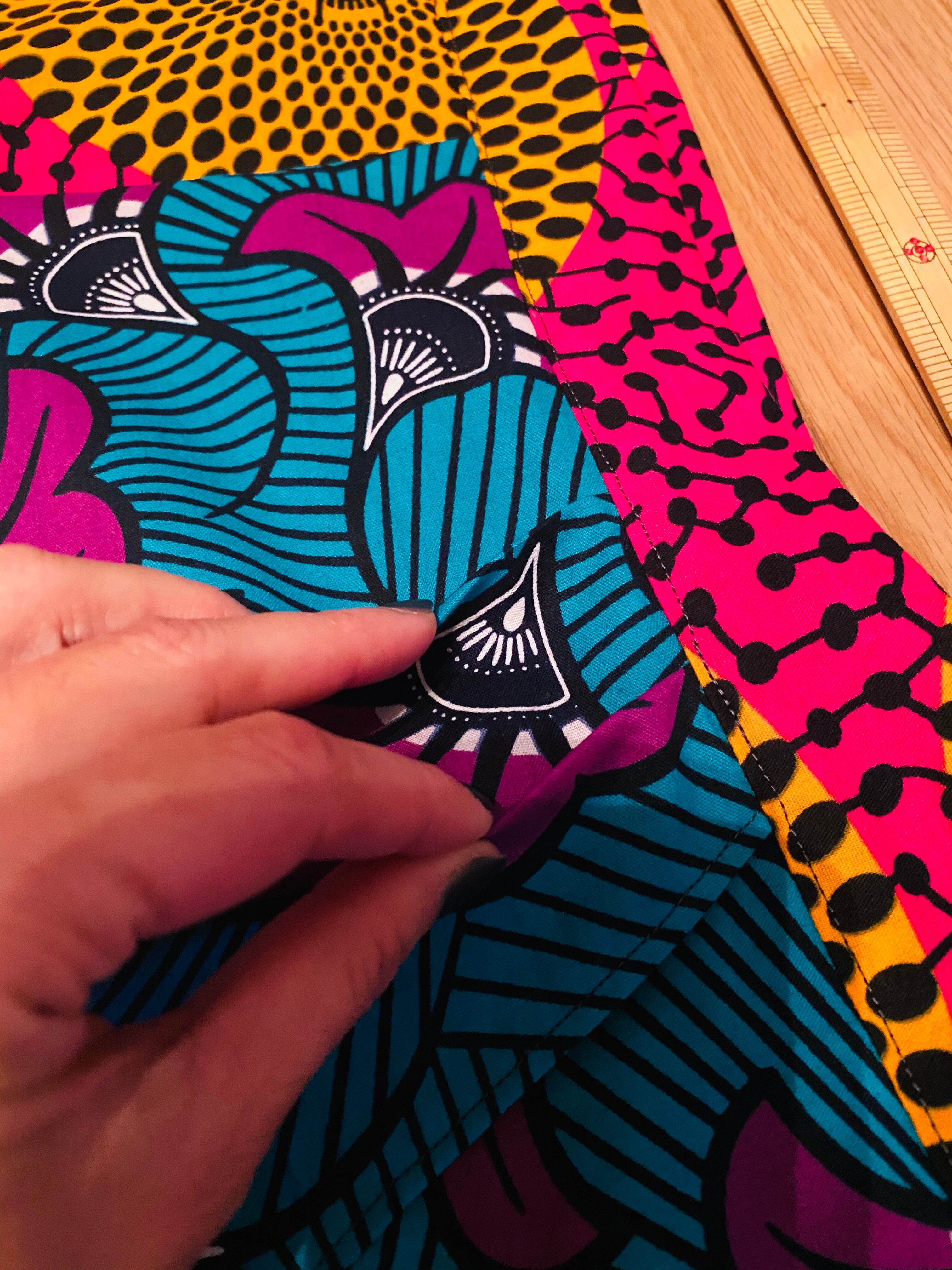 前身頃にはタックを入れたので、腰回りゆったりの割りにすっきりシルエットに仕上がりました。ふくよかさんはお手持ちのパンツとサイズ比べてみてくださいませ。