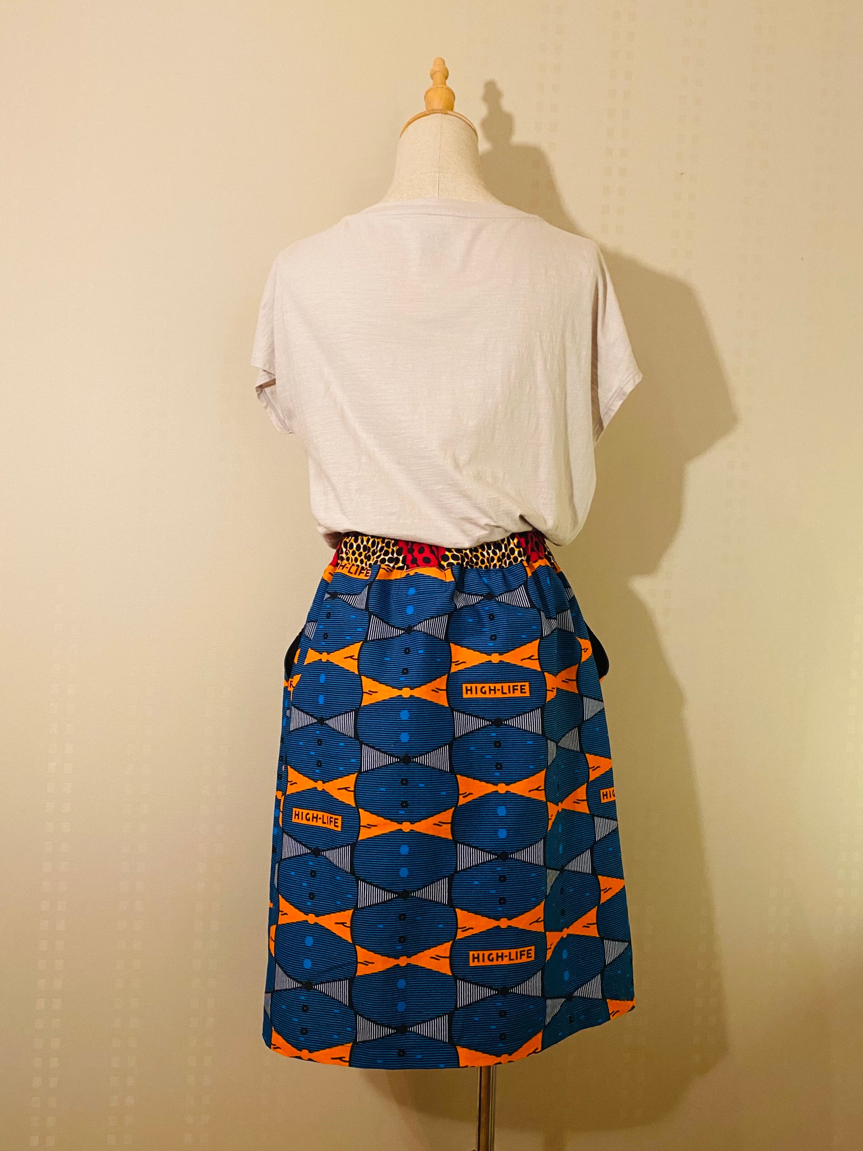 ◆ アフリカ布 ふんわりスカート54cm丈 Mサイズ 1-4