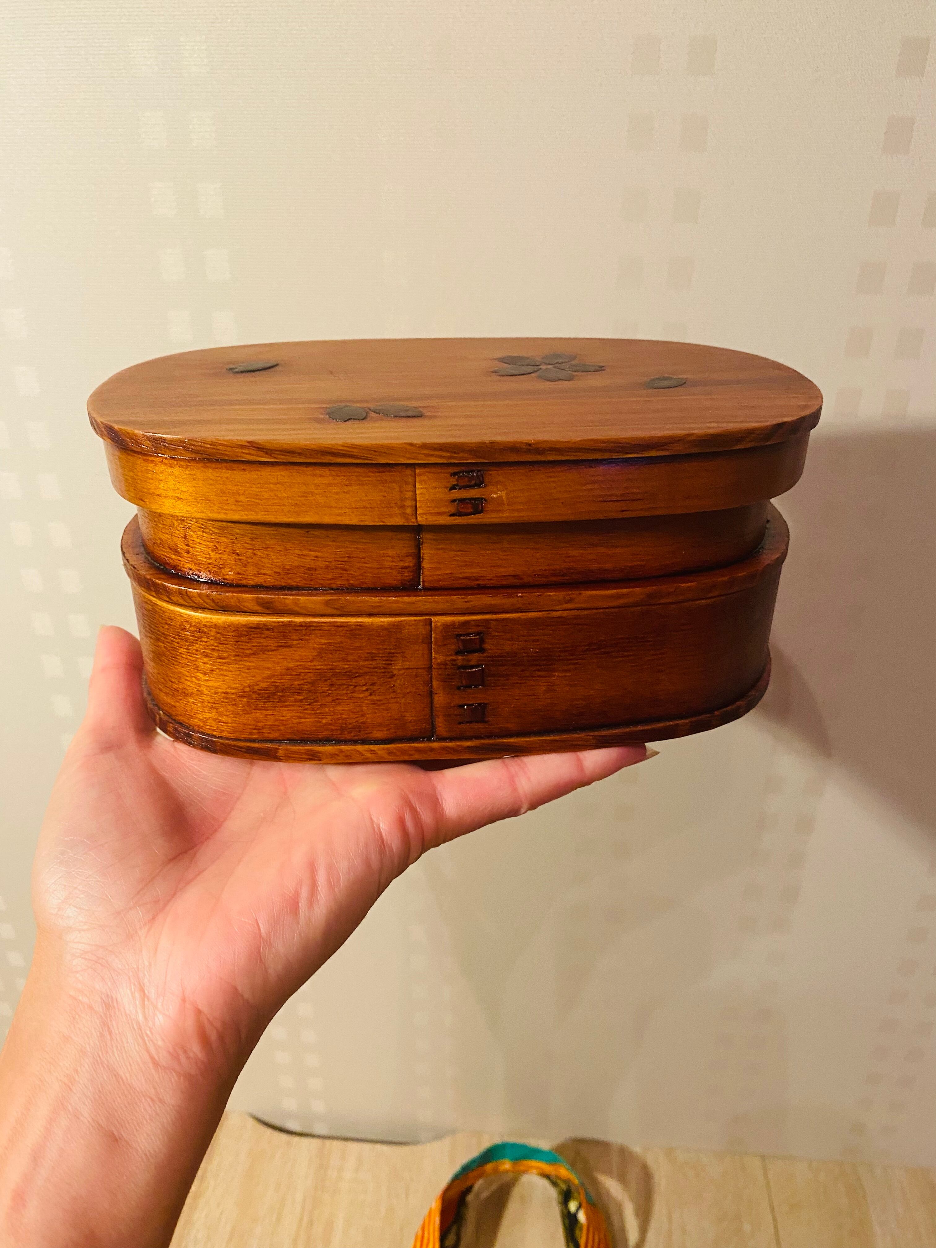 2段のまげわっぱと500mlのペットボトルを重ねて入れられるサイズのランチトート縫いました。小さい内ポケット付きで、外面と内面の前後計4柄+ポケットすべて違う柄でお楽しみいただけますよ。
