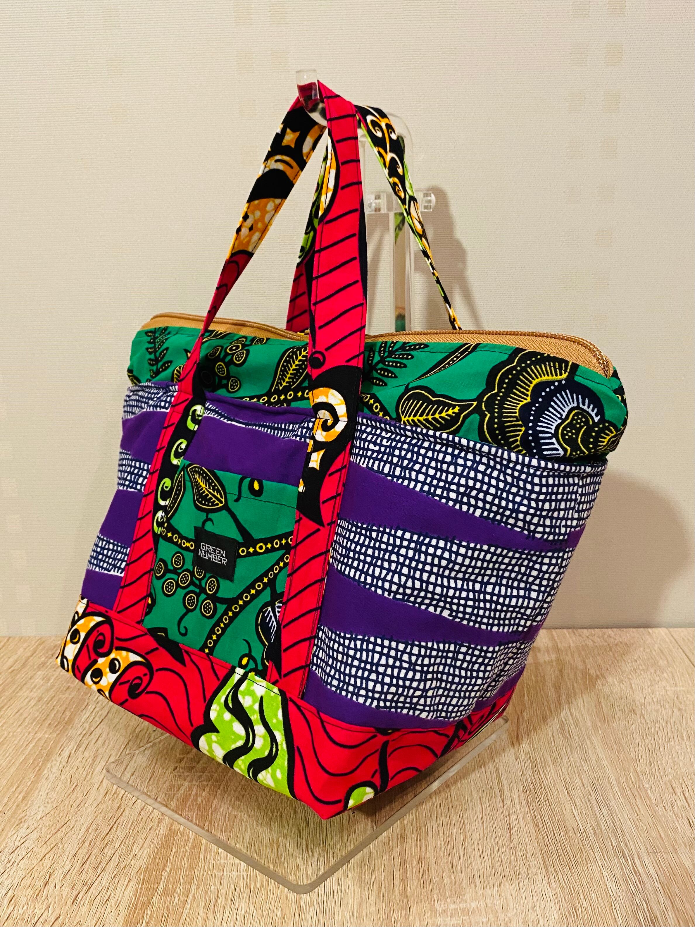 ◆アフリカ布 保冷保温バッグ(Bタイプ、大きめ)