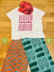 3. どちらかの脚の柄を指定、もう一枚はGreen Numberのセンスにお任せでリンクコーデできるキッズパンツを作製。キッズパンツの詳細はこちら:https://greennumber.base.shop/categories/4149786